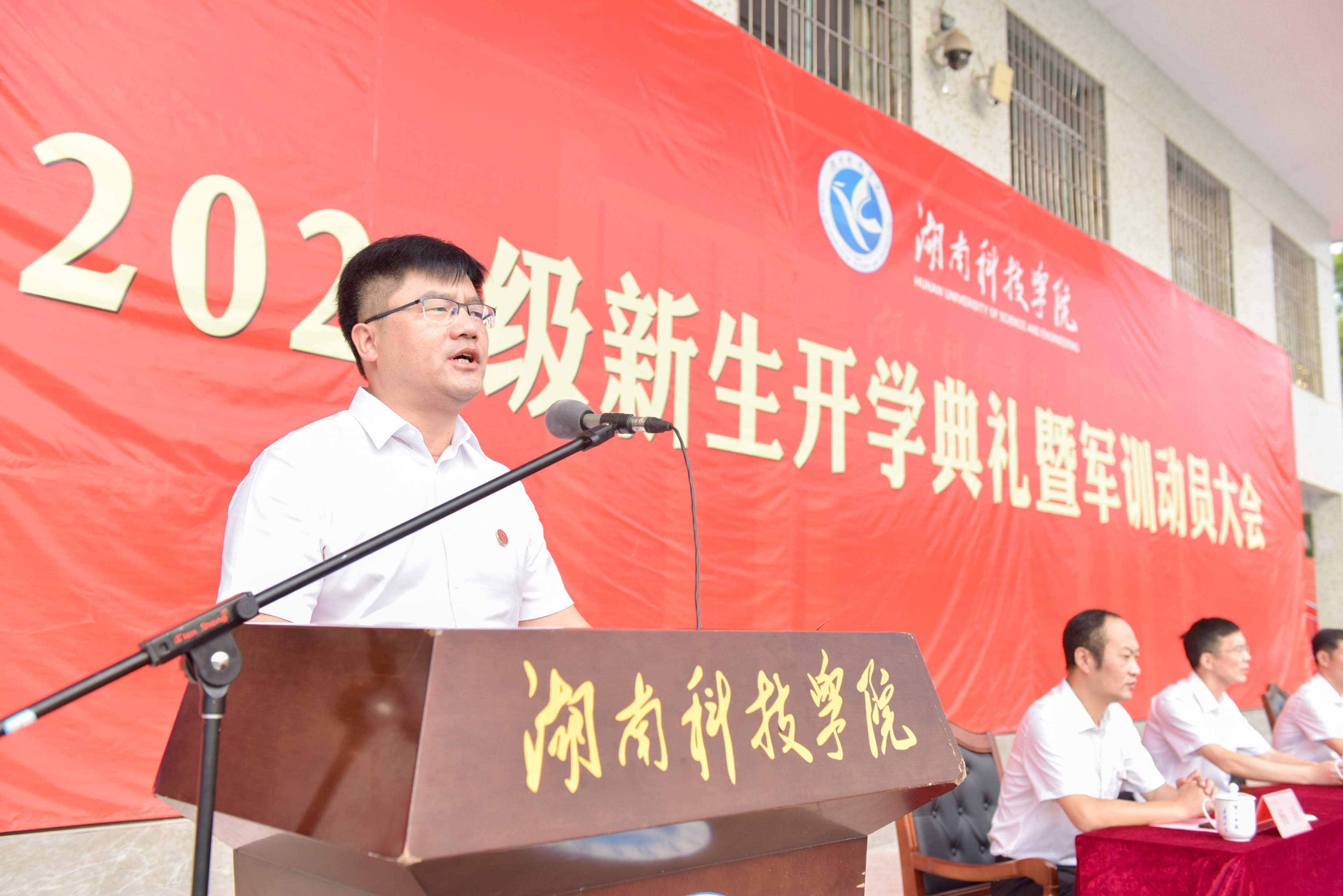 开学典礼在庄严肃穆的国歌声中拉开序幕。1991届校友肖茂哲用自己的亲身经历,告诉大家如何“做生命的行者”。土木与环境工程学院院长周基作为教师代表以多彩的大学生活从此刻启航为题发表演讲,化学与生物工程学院食品专业2018级老生代表左莎莎以“从百年党史中汲取奋进力量”为题发言,传媒学院广播电视编导专业2021级新生代表李云扬同学用相遇、不凡、温暖三个词讲述自己与湘科院的故事。