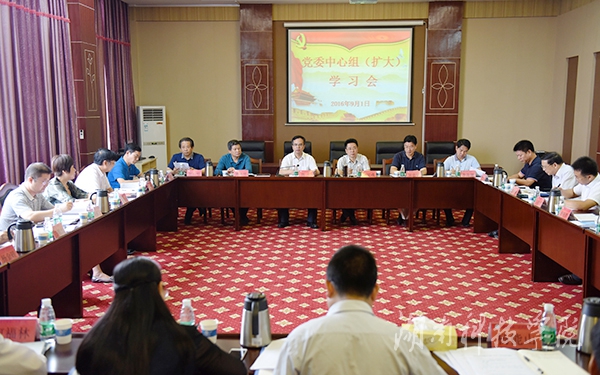 本网讯 9月1日,党委中心组(扩大)在行政办公楼八楼三会议室专题学习了习近平总书记在庆祝中国共产党成立95周年纪念大会上的讲话、省委组织部副部长胡奇在2016年全省普通高校领导干部暑期研讨班上的讲话、《中国共产党问责条例》、《湖南省普通高等学校党委领导下的校长负责制实施办法》和《华体会官方版网站登录入口章程》等讲话和文件精神。校党委书记陈弘主持并讲话。