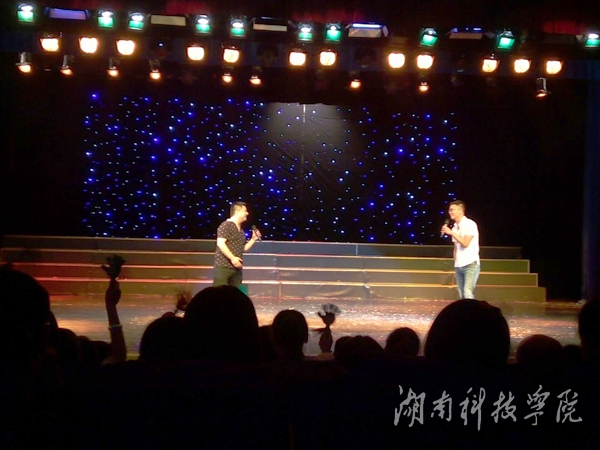 音乐与舞蹈学院张进城与他的乐队表演拉开了比赛的序幕;孙浩、周晨表演的舞蹈《七步》,用舞姿展示了三国时期曹丕、曹植兄弟之间的情义,给大家带来不一样的三国时代;龙贤周同学的一首原创歌曲《清晨》带领大家走过朝阳公园,听着永州三月清晨的鸟叫,引起观众的共鸣。中场计算分数时,科院好声音冠军电子与信息工程学院唐鹏飞老师、体育学院庄鸣老师为大家演唱了《天高地厚》,令全场沸腾。