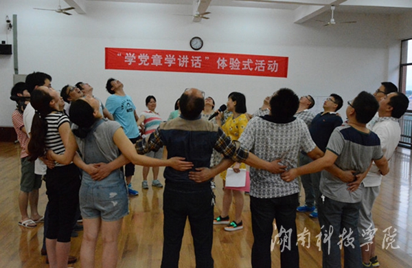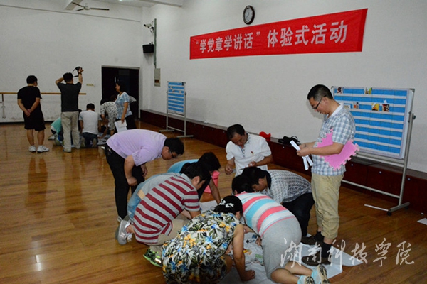 本网讯(记者 贺紫蝶)5月31日晚,电子与信息工程学院在体育训练馆四楼开展“学党章学讲话”体验式活动,20余名教师党员参加。党委书记陈弘、校长曾宝成现场观摩。