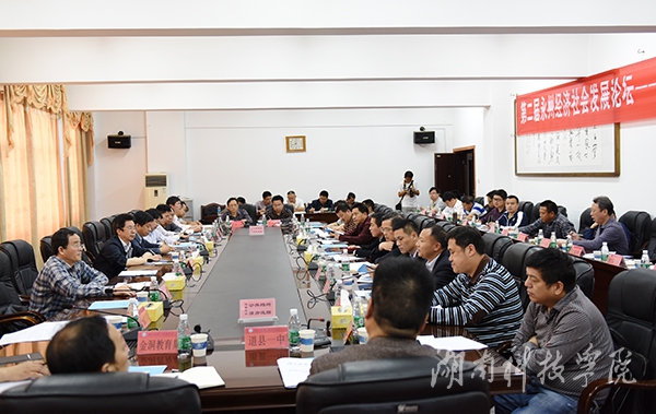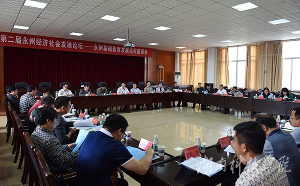 本网讯(记者 罗磊 肖浪 摄影 何帅文 严耀)5月8日上午,第二届永州经济社会发展论坛参会专家、永州市各县区中学校长及我校教师代表分成两个分会场举行专题座谈会。永州市教育局党组书记、局长蒋俊林,副局长李谋韬,永州市教科院副院长唐柏青及在家校领导曾宝成、宋宏福、郑山明、李常健、程智开等出席。座谈分别由副校长宋宏福、李常健主持。