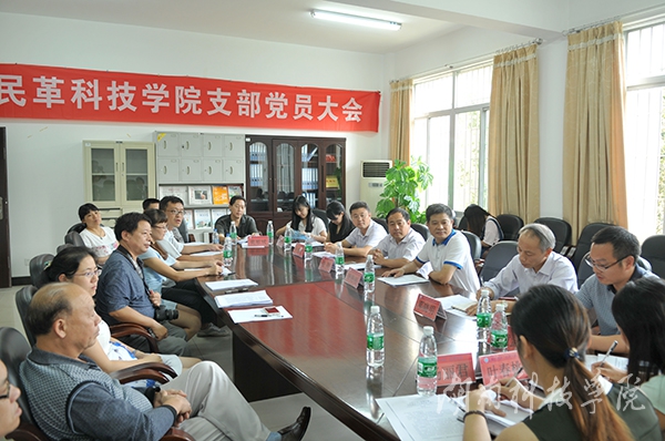 本网讯(记者 王翩翩 摄影 何帅文)9月16日下午,校民革支部在行政办公楼一楼会议室圆满完成换届选举。会议选举方芳、周飞战、徐湘勇为支部第二届委员会委员。永州市委统战部副部长邓晓明、校党委副书记唐艳明出席会议并讲话。