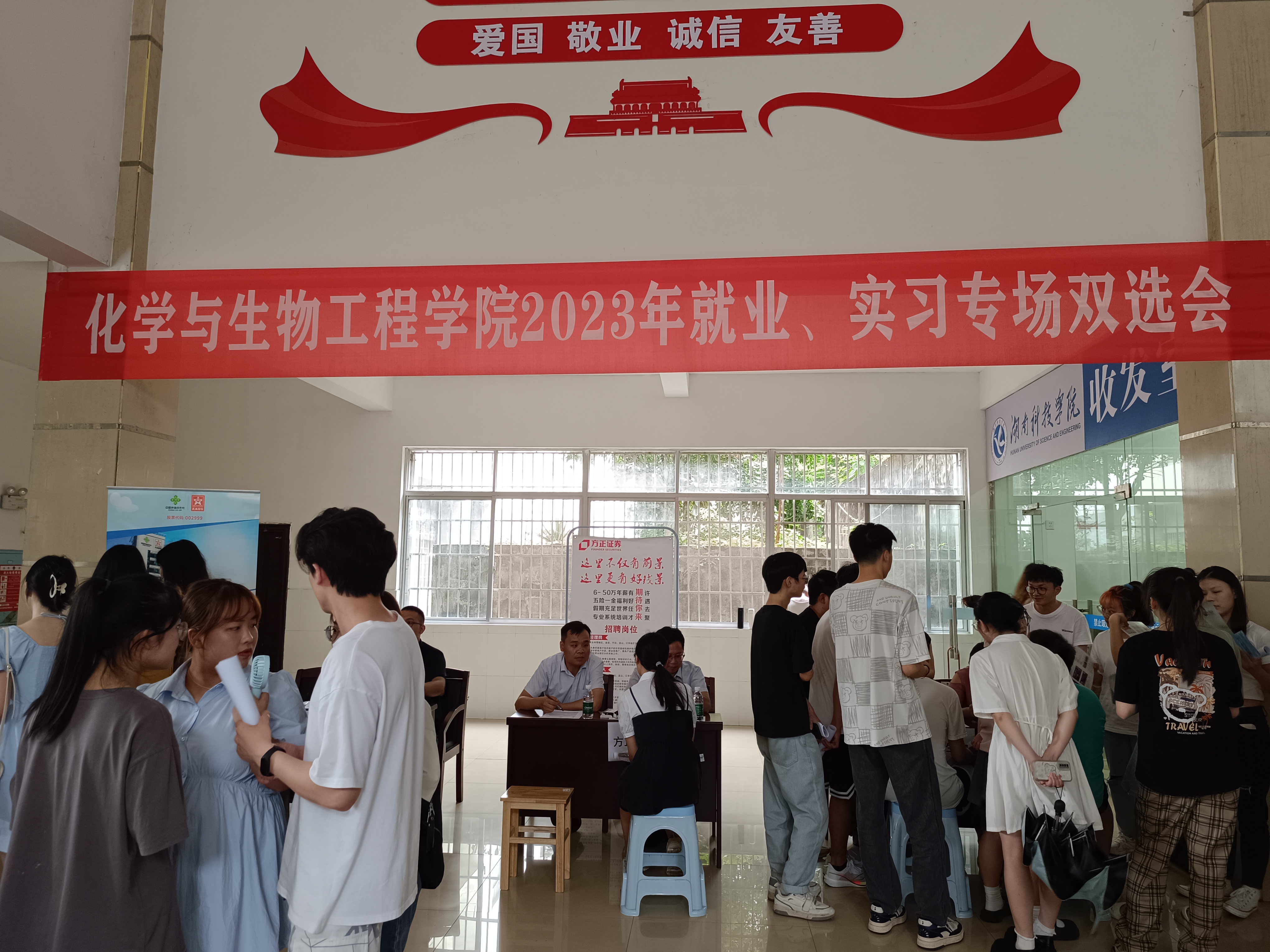 (本网讯 张自强)为进一步增强我院社会服务能力,提升社会影响力,为毕业生、实习生和用人单位搭建起对接平台,拓宽就业实习渠道。6月12日,化学与生物工程学院于逸夫楼大厅举办2023年就业、实习专场双选会。