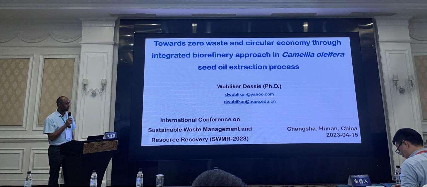 Dr. Wubliker Dessie, Associate Professor at the College of Chemistry and Bioengineering, Hunan University of Science and Engineering, presented his research achievements and progress at the International Conference on Sustainable Waste Management and Resource Recovery (SWMR-2023) in Changsha, Hunan, China from April 14-16, 2023. The title of his presentation was "Towards a Zero Waste and Circular Economy through an Integrated Biorefinery Approach in Camellia Oleifera Seed Oil Extraction Process". Dr. Dessie found the insights gained and networking opportunities to be truly valuable. As a Foreign Teacher and Researcher, Dr. Dessie continues to make significant contributions to the field of sustainable waste management and resource recovery.