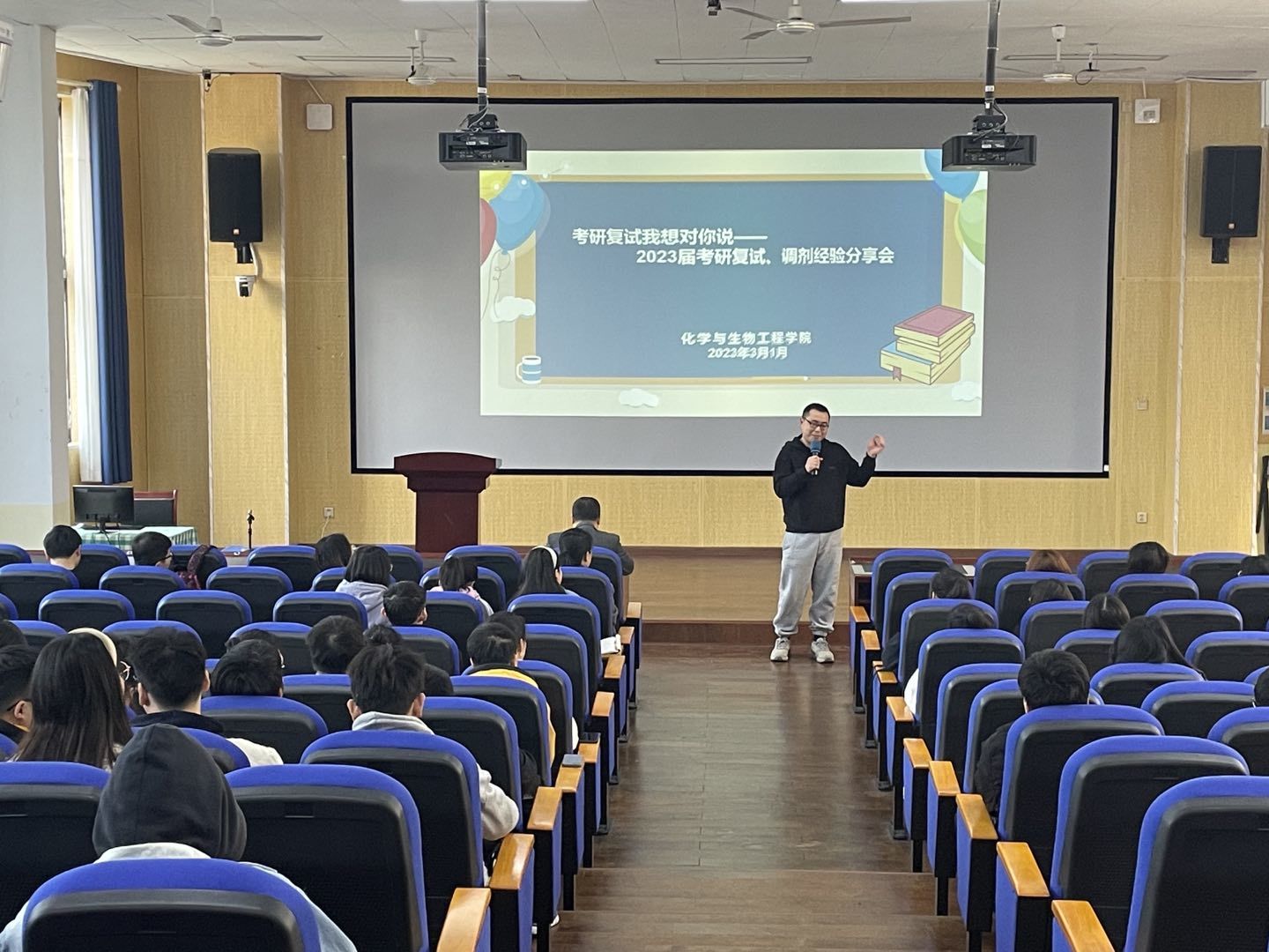 (本网讯 刘乐)为做好2023年研究生复试服务工作,助力我院考研学子更有针对性地做好考研复试、调剂准备,化学与生物工程学院于3月1日上午十点在博雅楼西三会议室举办了考研复试、调剂经验分享会。此次分享会特别邀请了学院院长覃佐东,专任教师全沁果进行经验分享,党总支副书记基艳、全体辅导员老师及2019级考研学生参加此次分享会,会议由党总支书记曾二青主持。