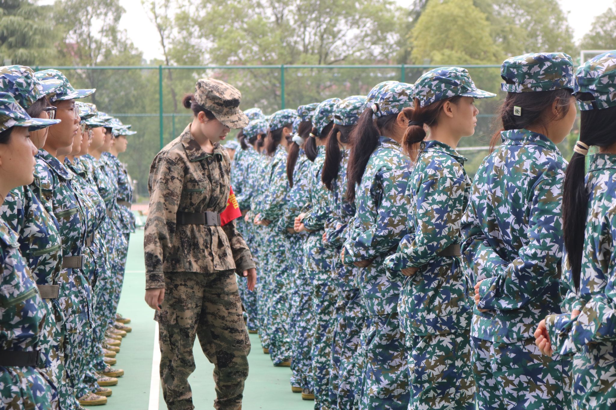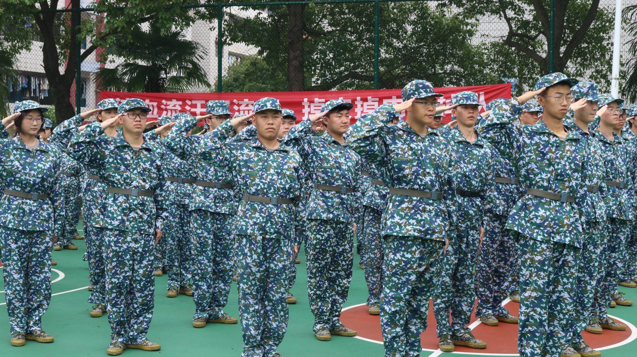 烈日下,球场中,方阵间,伴随着一声声响亮的“稍息,立正”,站军姿、踢正步、走方队等一系列训练活动按计划不断进行。