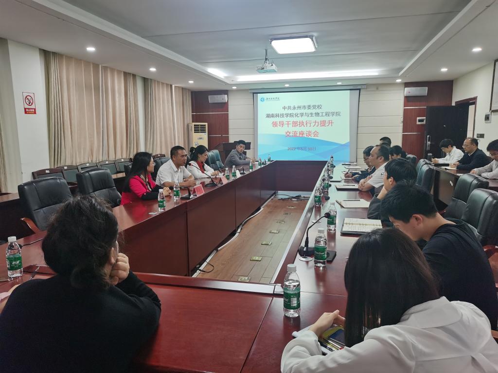 本网讯(徐香琴)进一步加强学院管理队伍建设,提高管理和服务能力,5月10日下午,化生学院在逸夫楼320会议室召开中层干部交流座谈会,中共永州市委党校副校长、永州市党员干部培训教师专家库专家齐小玉一行3人应邀出席,学院领导班子及全体中层干部参加会议,会议由党总支书记曾二青主持。