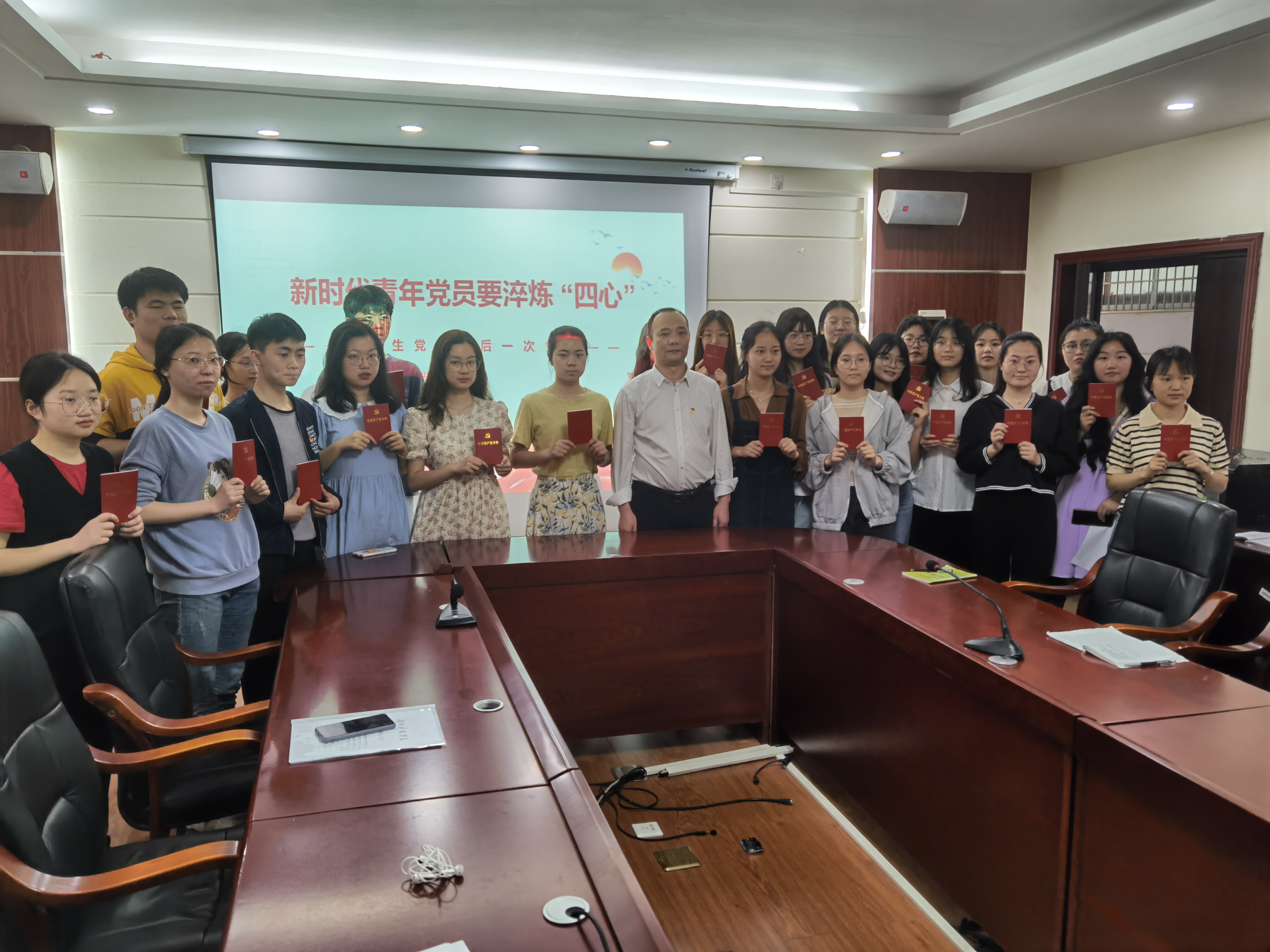 课上,曾书记带领全体毕业党员一起重温入党誓词,并从以“咬定青山不放松”的境界淬炼忠诚之心、以“一片冰心在玉壶”的境界淬炼干净之心、以“不待扬鞭自奋蹄”的境界淬炼奋进之心、以“绝知此事要躬行”的境界淬炼实干之心等四个方面展开阐述,引导毕业生党员无论何时何地何种情况都要忠于党,不背叛党。寄语莘莘学子要保持要始终保持思想上的绝对纯洁、信念上的绝对坚定,政治上的绝对清醒,不断增强党性意识、忠诚意识;自觉加强道德修养,明辨是非曲直,增强自我定力,矢志追求更有高度、更有境界、更有品位的人生;不急于求成,不急功近利,不在“内卷”“躺平”“焦虑”的裹挟中生存,努力做到胸怀大局、从容淡定;要有“功成不必在我,建功必须有我”的境界和志向,心向下沉、脚向下走、力向下使,在基层实践中磨炼意志、提高能力、积累经验,增长才干,用实实在在的业绩赢得群众的信任、组织的认可,实现自我价值。课后,曾书记给毕业生党员分发《中国共产党章程》,并合影留念。