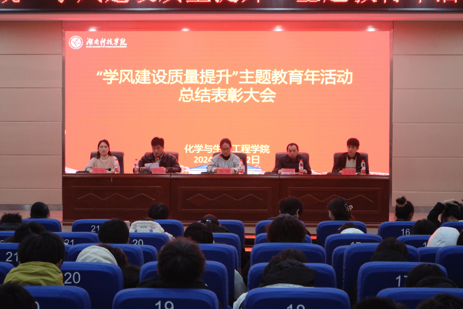 (本网讯 陈卓妍 王翠微)为持续加强我院学风建设工作,激发同学们争优创先的积极性与主动性,营造优良的学习氛围。12月12日,化学与生物工程学院于潇湘大讲堂成功举办了“学风建设质量提升”主题教育年活动总结表彰大会。化学与生物工程学院党总支副书记基艳,副院长肖新生,辅导员老师陈宇、王婧、张自强出席本次会议,会议由陈宇老师主持。2022级、2023级和2024级学生参加会议。