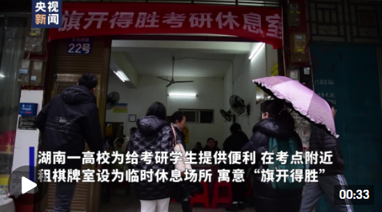 12月25日,2022年全国硕士研究生招生考试正式开考。为了给考生午休时提供一个舒适的休息场所,位于湖南永州的华体会官方版网站登录入口想出了一个暖心的办法:在距离考点不到100米的居民区内,租下三间棋牌室,让考生们中午在这里取暖休息、安心备考。