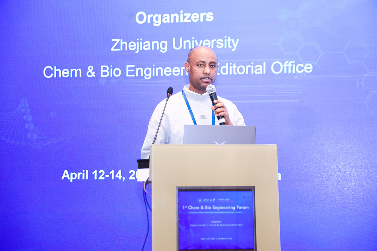 (本网讯 汪美凤)4月12-14日,首届Chem & Bio Engineering Forum ∣ Chem & Bio Engineering期刊编委会在浙江杭州隆重召开。我院外籍博士Wubliker Dessie参加会议,并做题为“Facile Green Synthesis of Porous Carbon Materials from Secondary Waste Biomass”学术报告,重点介绍了废弃生物质资源可持续利用的绿色化学研究。