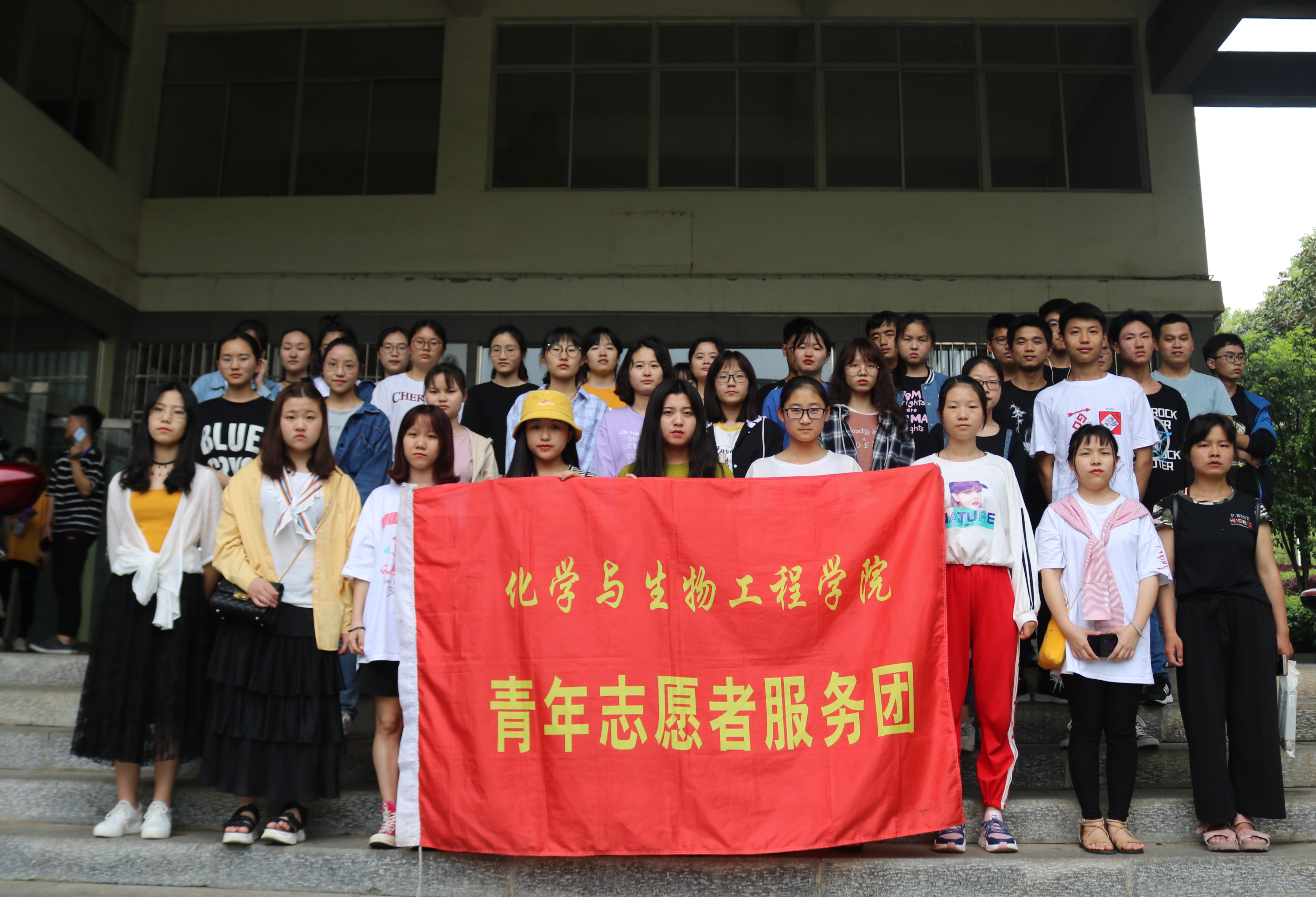(志愿者在逸夫楼前合影)