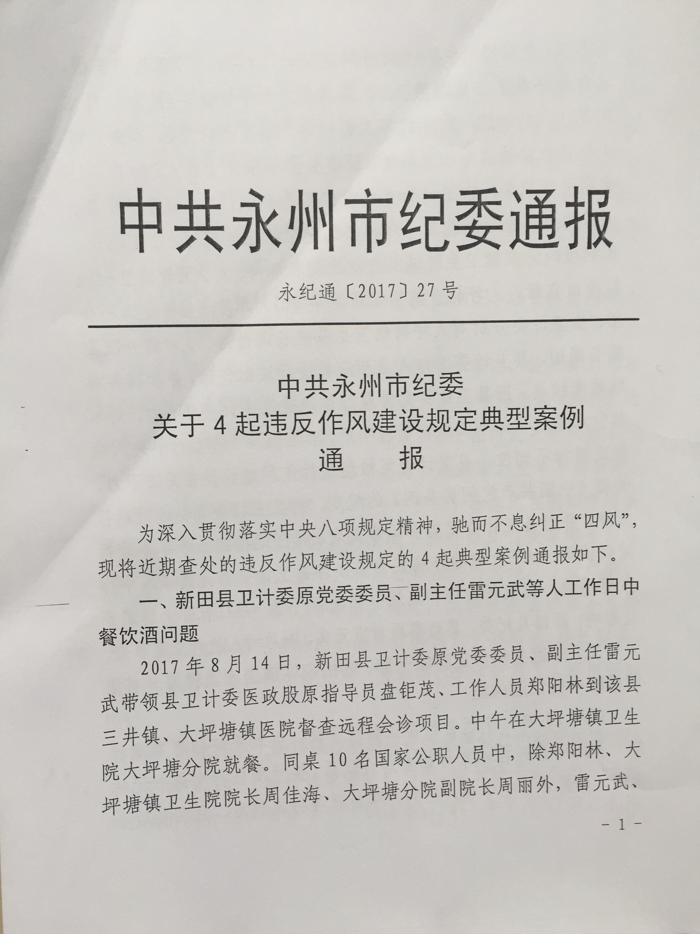 关于转发《中共永州市纪委关于4起违反作风建设规定典型案例通报》等文件的通知