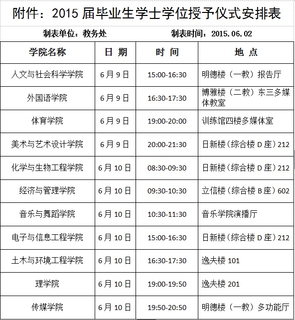 附件:2015届毕业生学士学位授予仪式安排表