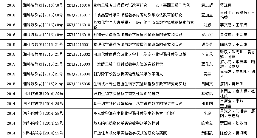 2014-2018年校级教改立项项目