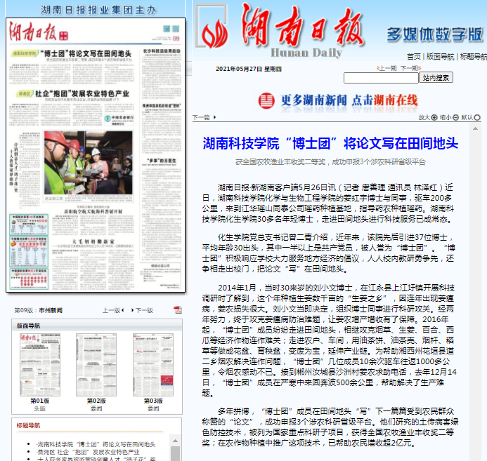 湖南日报:华体会官方版网站登录入口“博士团”将论文写在田间地头