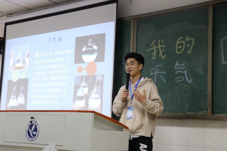 科创干事王磊为大家介绍了天气瓶的基本信息,并为大家讲解了关于天气瓶变化现象的反应原理,协会干事为大家播放了制作天气瓶的视频,并进行详细讲解。了解操作步骤后,同学们开始动手制作,在干事的辅助下,同学们都做出了属于自己的天气瓶。不仅如此,大家还为天气瓶进行了颜色装饰,让天气瓶闪烁着五彩斑斓的光芒。