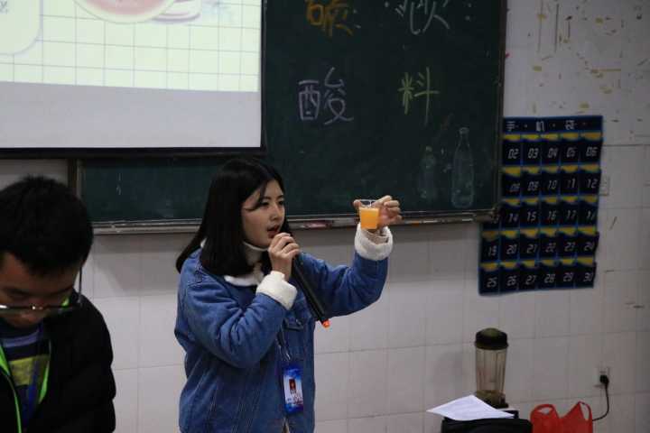 大学生科技创新协会会长陈思对成功制作碳酸饮料的小组进行了点评,并和大家分享她的制作心得。