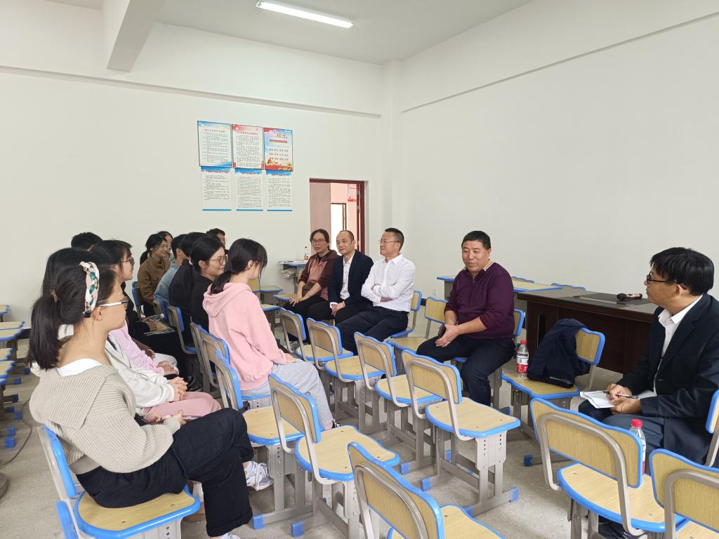 在实习学校召开的座谈会中,实习学校校长详细介绍了实习生培养方案。实习指导老师对我校实习生给予高度评价,一致认为实习同学思想品德优秀,专业素养过硬,吃苦耐劳表现突出。曾二青对实习学校的精心培养表示感谢,同时对实习生提出要求,鼓励同学们要把握住实习机会,多锻炼、多实践、多思考、多改进,不断磨练和提升个人教学技能。实习学生就个人的实习工作情况和心得体会进行了交流分享。