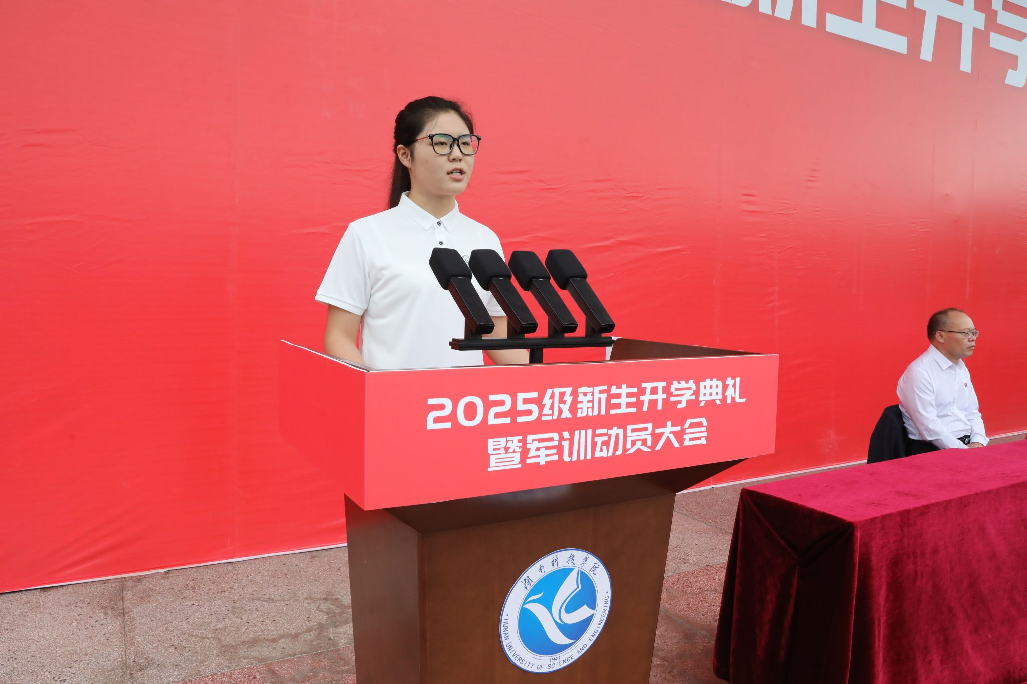 新生代表、智能制造学院智造工程2503班张宏啓同学表达了对大学生活的憧憬与承诺,呼吁全体新生以包容协作的态度融入集体,以专业学习筑牢根基,以实践探索拓宽视野,共同书写2025级新生们的青春篇章。