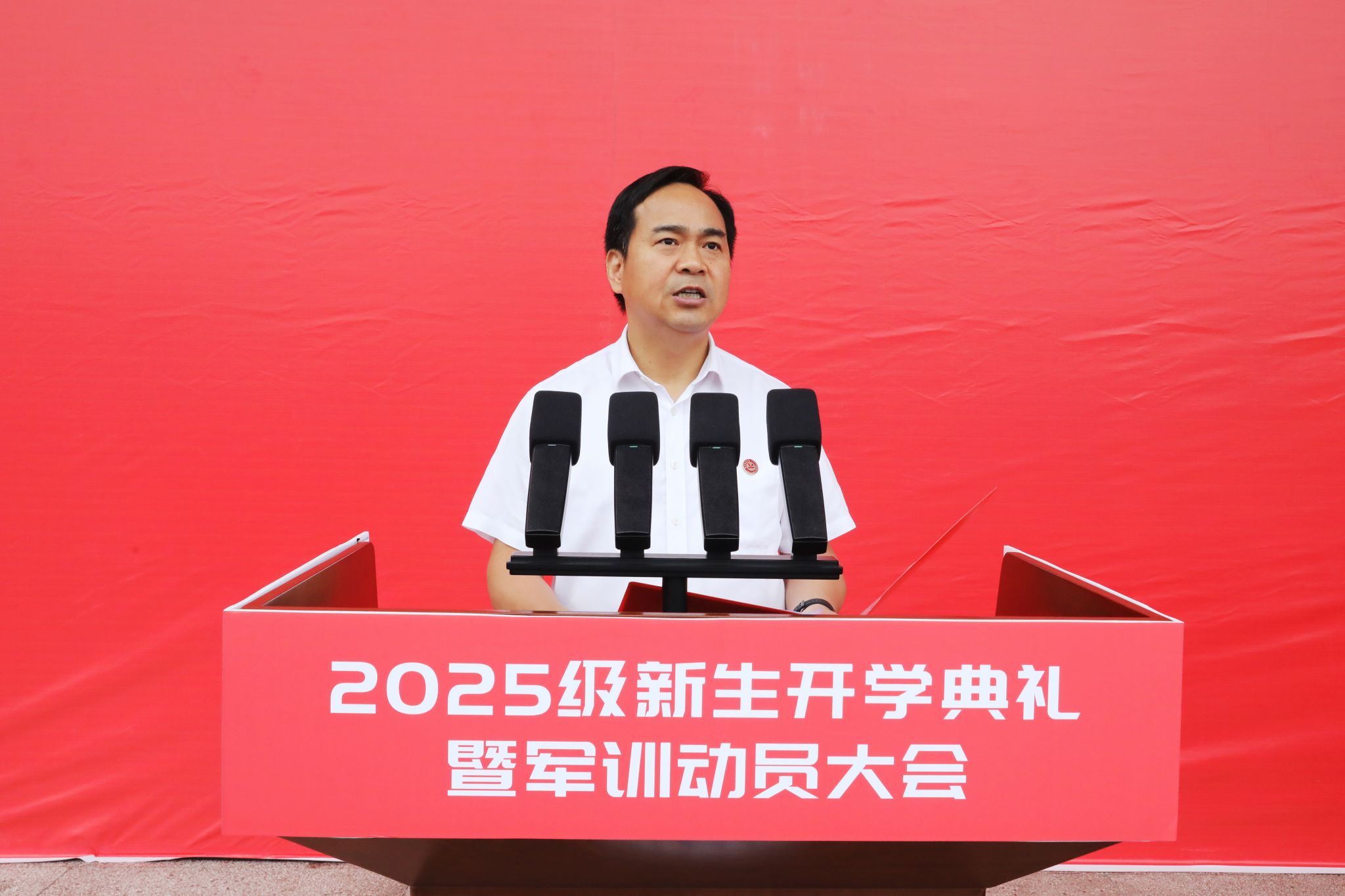 本网讯(记者 彭尧煜)西山叠翠迎新生,潇水欢歌启新程。9月22日上午,学校在田径场举行2025级新生开学典礼。校党委书记李钢,党委副书记、校长黄创霞,校领导李常健、何福林、陈灿军、郑银芳、何海,党委委员、组织部部长杨涛出席典礼。典礼由杨涛主持。