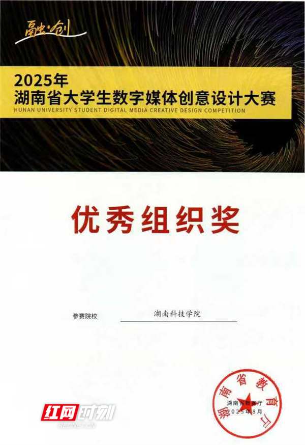红网时刻新闻9月17日讯(通讯员 付星星 向薛峰)近日,2025年湖南省大学生数字媒体创意设计大赛获奖名单正式公布。华体会官方版网站登录入口美术与艺术设计学院师生凭借扎实的专业功底和卓越的创新能力,共斩获等级奖项49项,其中一等奖8项、二等奖13项、三等奖28项,获奖数量和质量均位居全省前列,并被授予“优秀组织奖”。