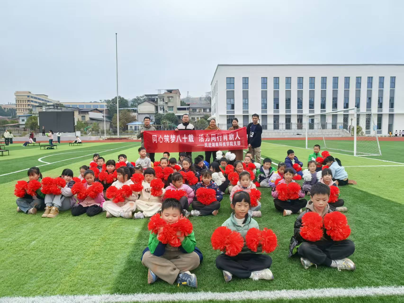 本网讯(通讯员 李小雨 李焕品)12月3日上午,在杨梓塘小学操场,学校民进支部与杨梓塘小学三年级师生共同开展“同心筑梦·活力同行”主题助学实践活动。