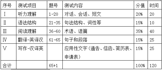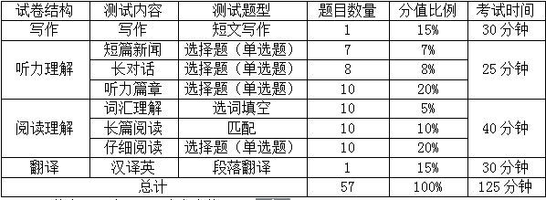 (一)英语四级试卷结构: