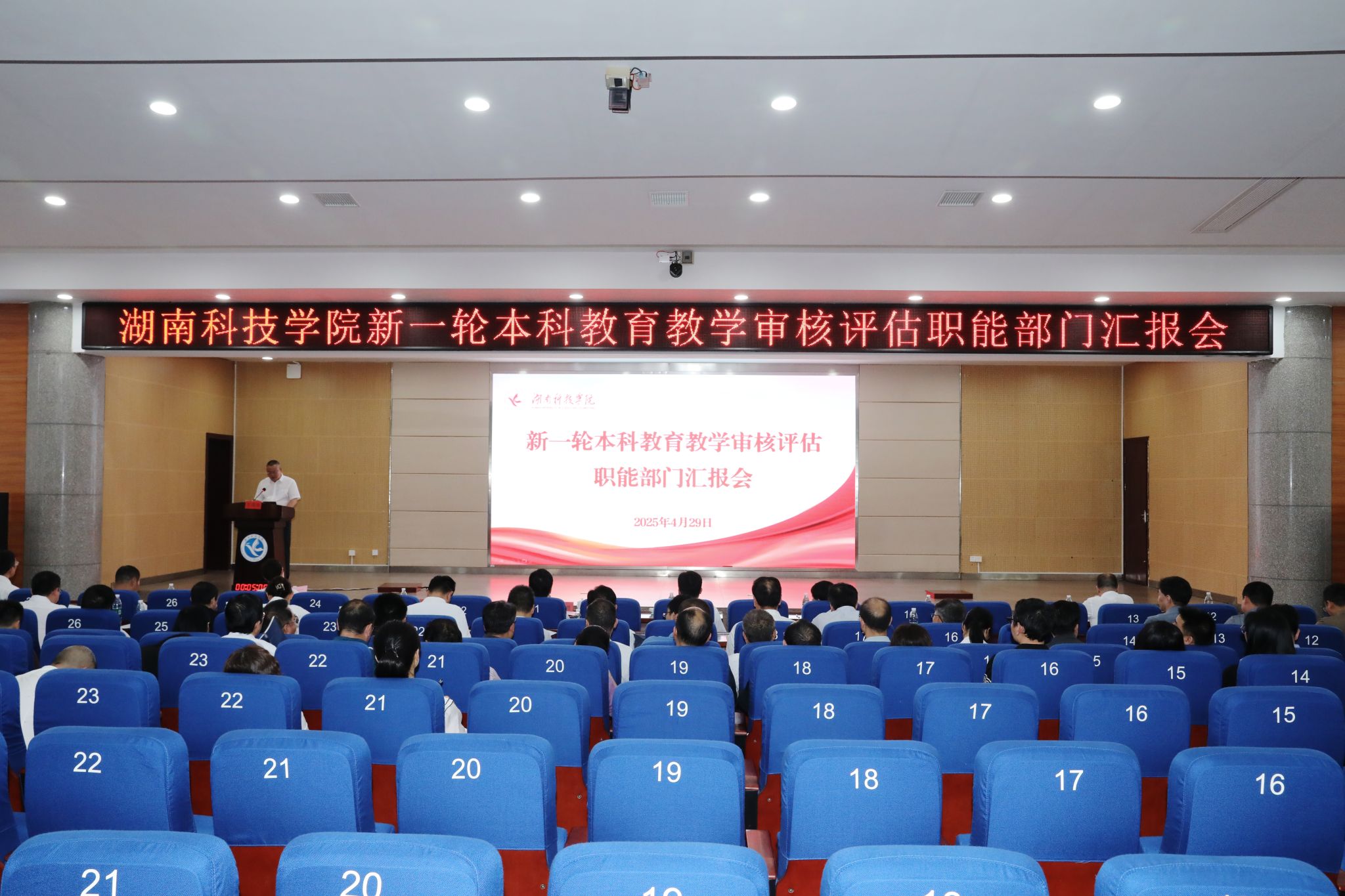 本网讯(记者 张云芳 摄影 谢志豪)4月29日下午,学校召开本科教育教学审核评估职能部门工作汇报会。全体校领导、党委委员出席会议,会议由党委委员、副校长何福林主持。