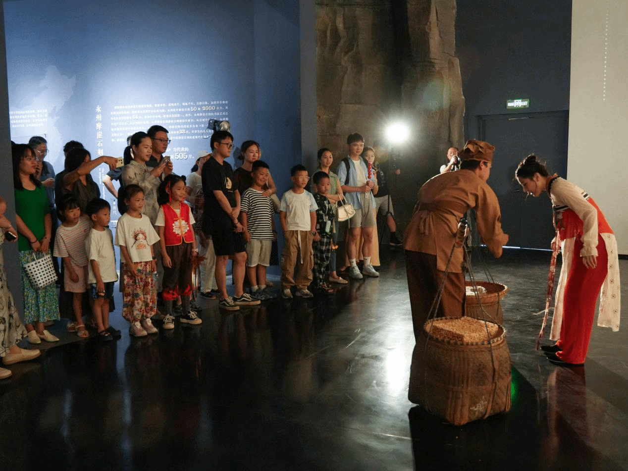 “我们第一次来到摩崖石刻数字博物馆,就被这里深厚的文化底蕴所打动,当时就下定决心,要以场馆为舞台,以碑刻文化为主题创作一部舞蹈作品。”作品融合舞蹈、戏剧、数字媒体等多种艺术形式,叙述了大学生小李参观摩崖石刻数字博物馆的所见所闻,从参观者的视角欣赏摩崖石刻的历史渊源,讲述传统人文精神的现代故事,展望数字科技助力文化传承。观众在小李的引导下,在各个展区间移动,尽享全景式沉浸、一步一景的独特观演体验。