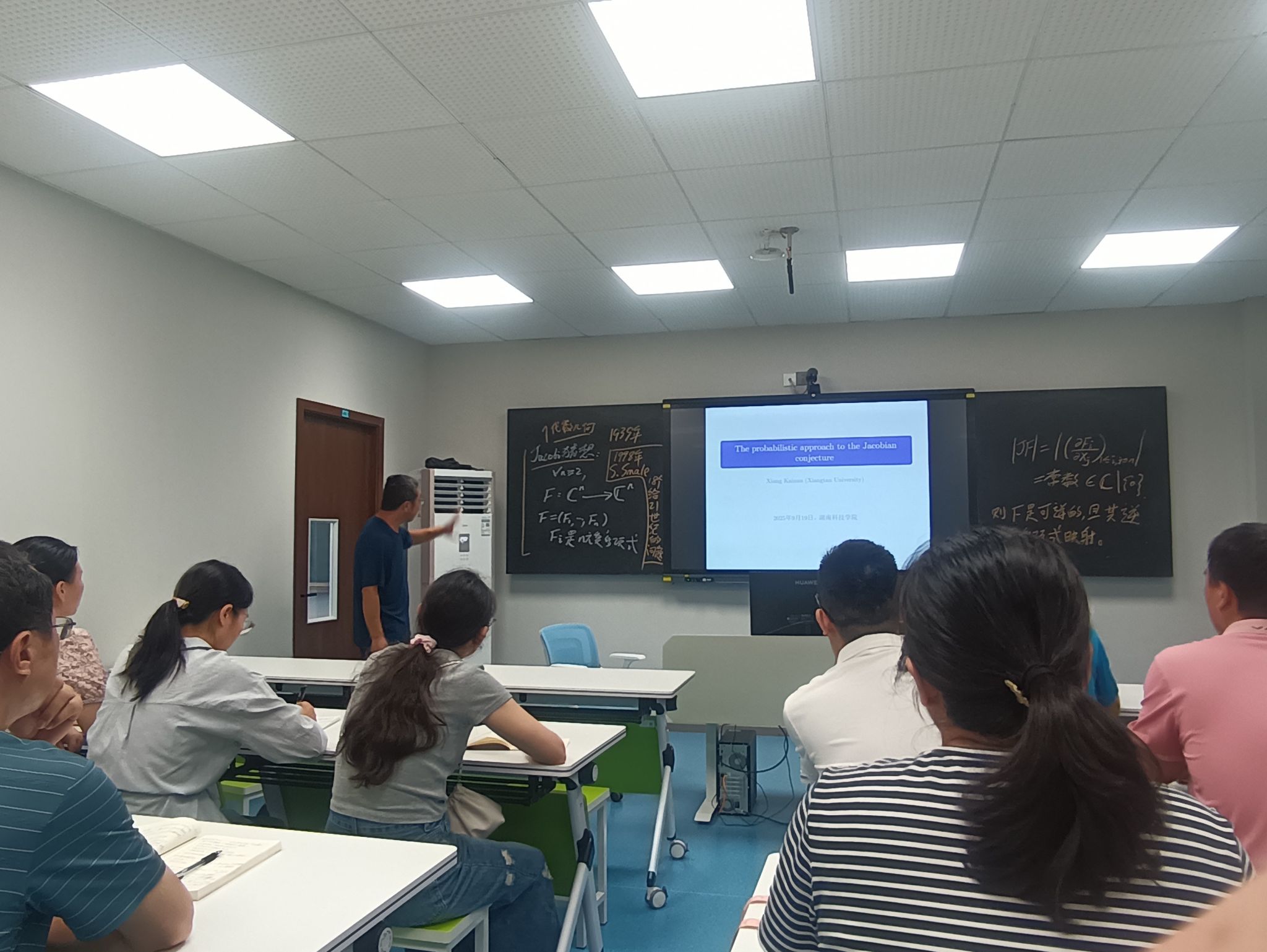 本网讯(通讯员 臧乃策)919日下午,华体会官方版网站登录入口明理楼402教室座无虚席,一场聚焦数学界著名难题“雅可比猜想”的学术盛宴在此拉开帷幕。湘潭大学向开南教授做客“明理讲坛”,以The probabilistic approach to the Jacobian conjecture为题,为师生们带来了一场关于雅可比猜想概率方法的精彩学术报告。