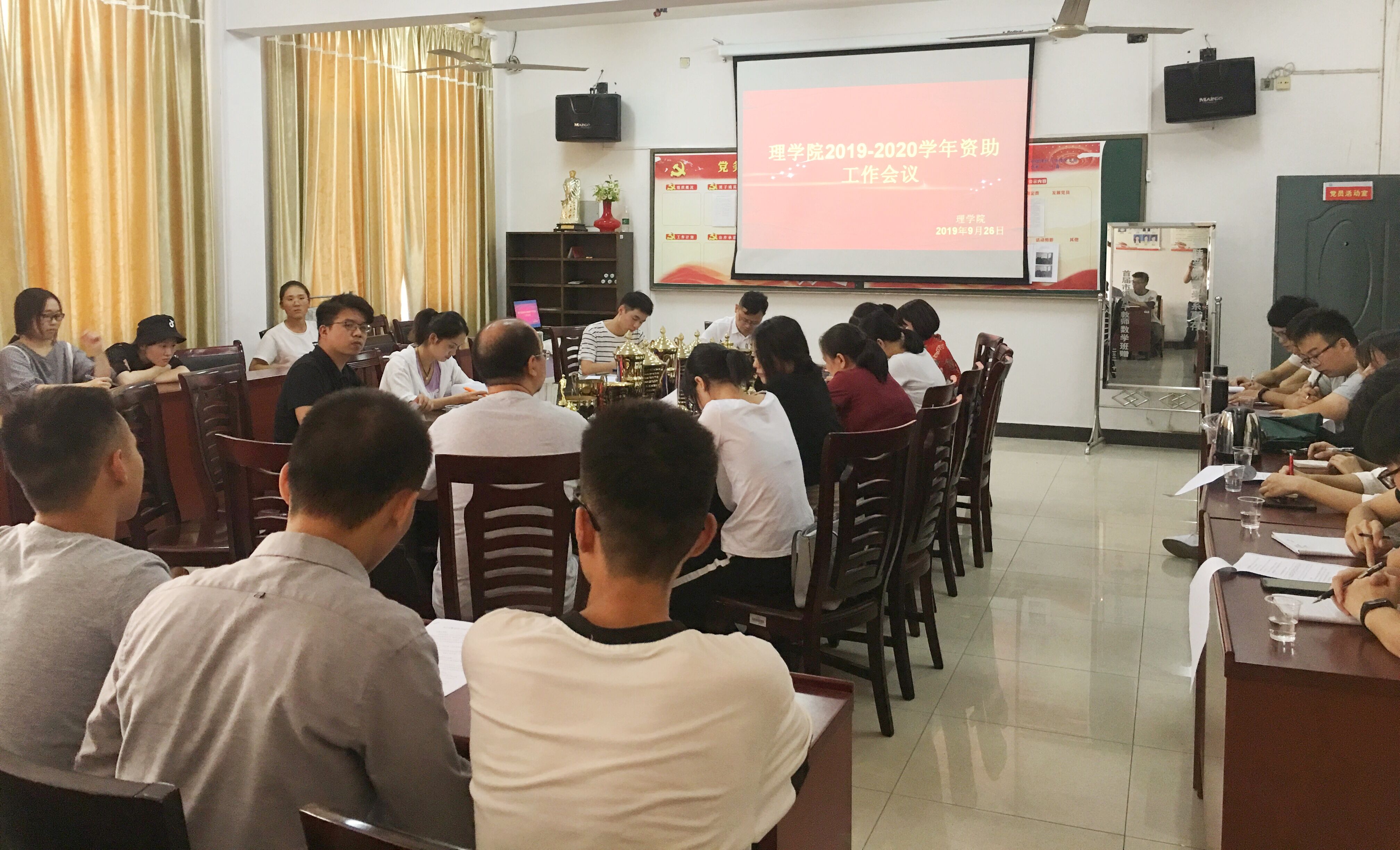 本网讯(通讯员 杜俊杰)9月26日,理学院召开2019——2020年资助工作会议,学院党总支副书记唐卫华、全体辅导员、新生班主任、全体班长参加会议。会议由学院资助专干曹惠如主持。