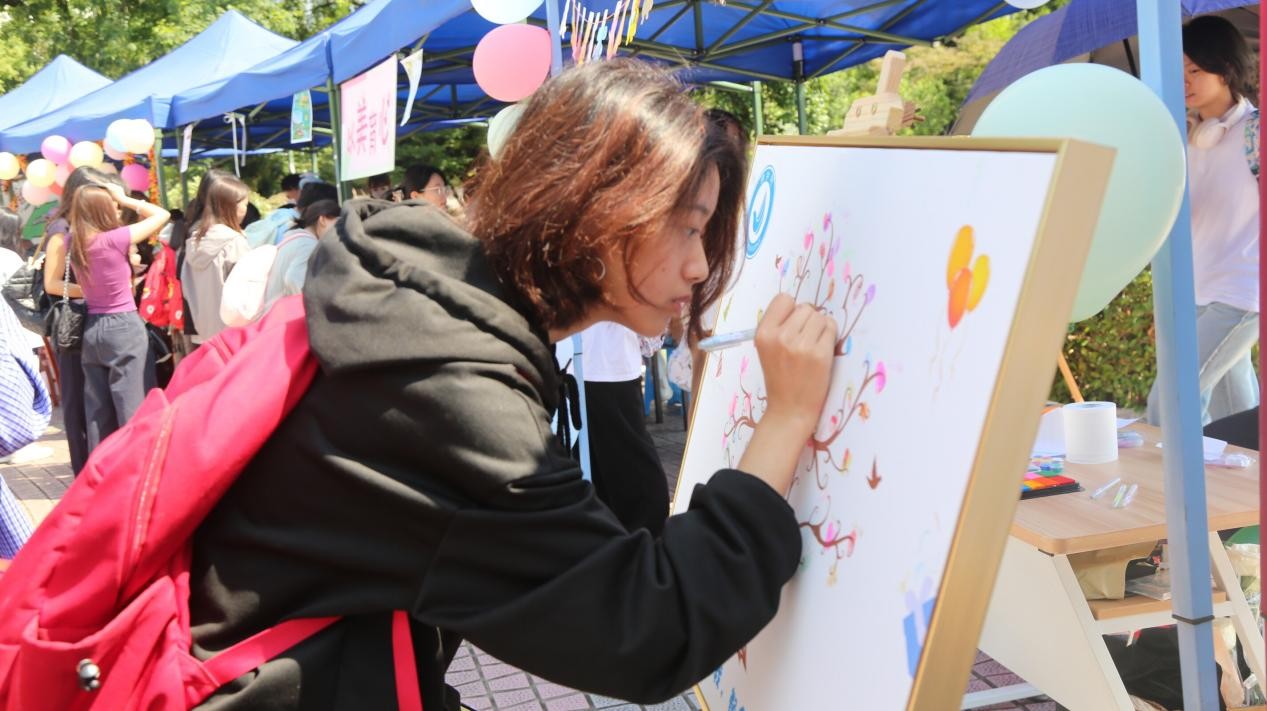 现场的活动项目主要围绕“以德育心”、“以智慧心”、“以体强心”、“以美育心”、“以劳健心”五个方面开展,全面贯彻德智体美劳五个理念。主要活动有“‘每一个我,都会盛开’——独一无二的指纹树”、“‘送走焦虑,传递鼓励’——情绪交换盲盒”等。整场活动氛围浓烈,处处洋溢着欢声笑语,学生们体验到了丰富多彩的项目,收获了身体和心理的双重愉悦,为同学们留下了不一样的活动体验。
