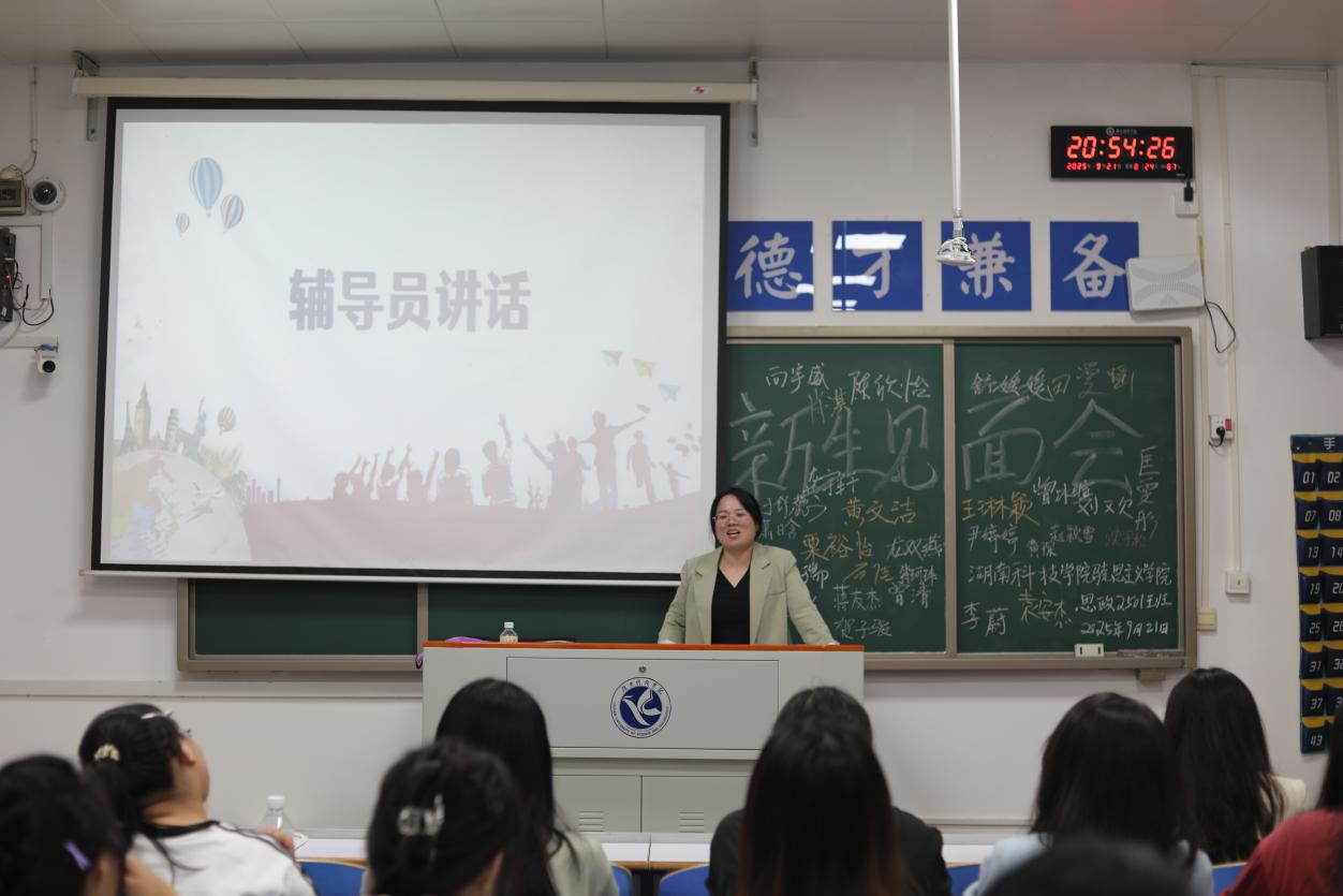 本网讯(记者 吴美林)为促进同学间的相互了解,强化班级认同感。9月21日晚,马克思主义学院召开以“新征程 再出发”为主题的新生班级入学见面会,2025级辅导员曹惠如、班主任及2025级全体同学参加。