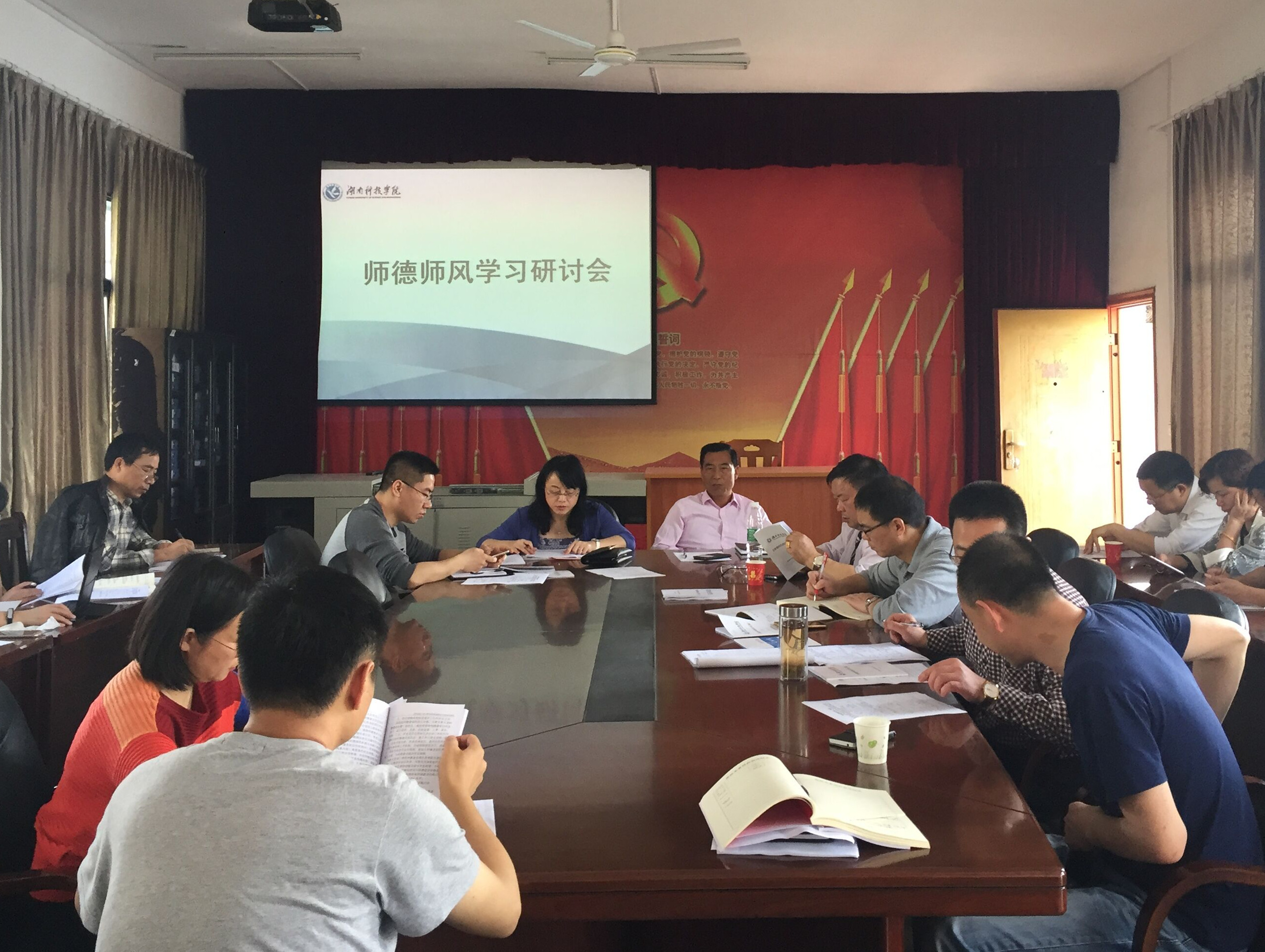 本网讯 (通讯员 李艳)为了贯彻落实全国高校思想政治工作会议,进一步加强学院教师职业理想和职业道德建设,增强广大教师教书育人的责任感和使命感,助力人才培养质量的提升,促进学院教学、管理等各项事业科学发展,4月19日,马克思主义学院在鹤鸣楼召开了师德师风建设专题研讨会,全院教师与会。