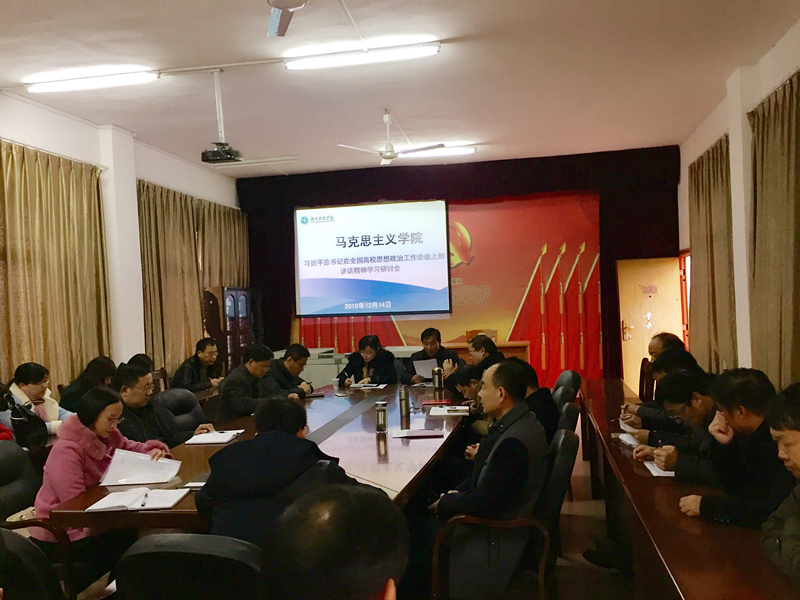 会上,该院党总支书记唐森树首先带领大家学习了习近平总书记在此次会议上的重要讲话。他以“如何做好高校思想政治工作”为切入点解读了习总书记关于高校思想政治工作的新思路,并结合学生思想政治工作和思想政治理论课教学工作实际,谈了对此次会议精神的认识,要求与会教师要进一步深化学习领会,把会议精神贯彻到教学中去。该院院长廖雅琴指出,思想政治理论课教师要在工作中不断加强自身理论水平,不断探索更有效的新方法和新途径,提高高校思想政治教育的实效性。