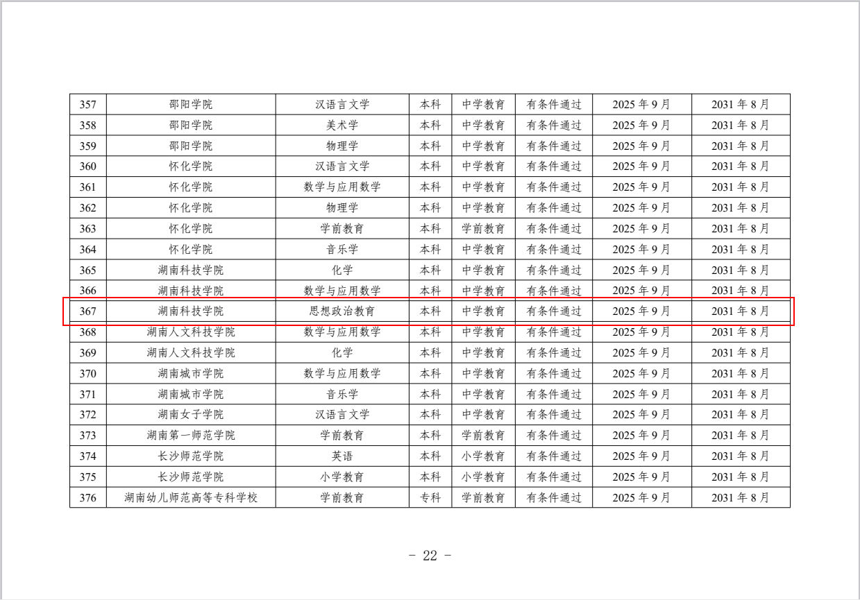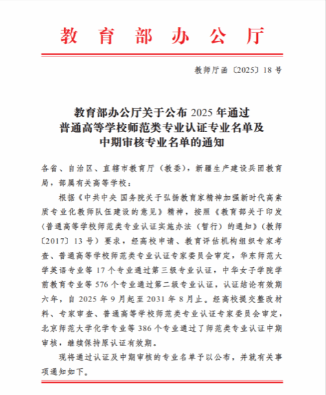 本网讯(记者 吴志伟)近日,教育部办公厅发布《关于公布2025年通过普通高等学校师范类专业认证专业名单及中期审核专业名单的通知》,我院思想政治教育专业成功通过普通高等学校师范类专业第二级认证。该专业同时成为我校本年度通过此项认证的三个专业之一,标志着其师范类专业建设质量与人才培养水平获权威认可。