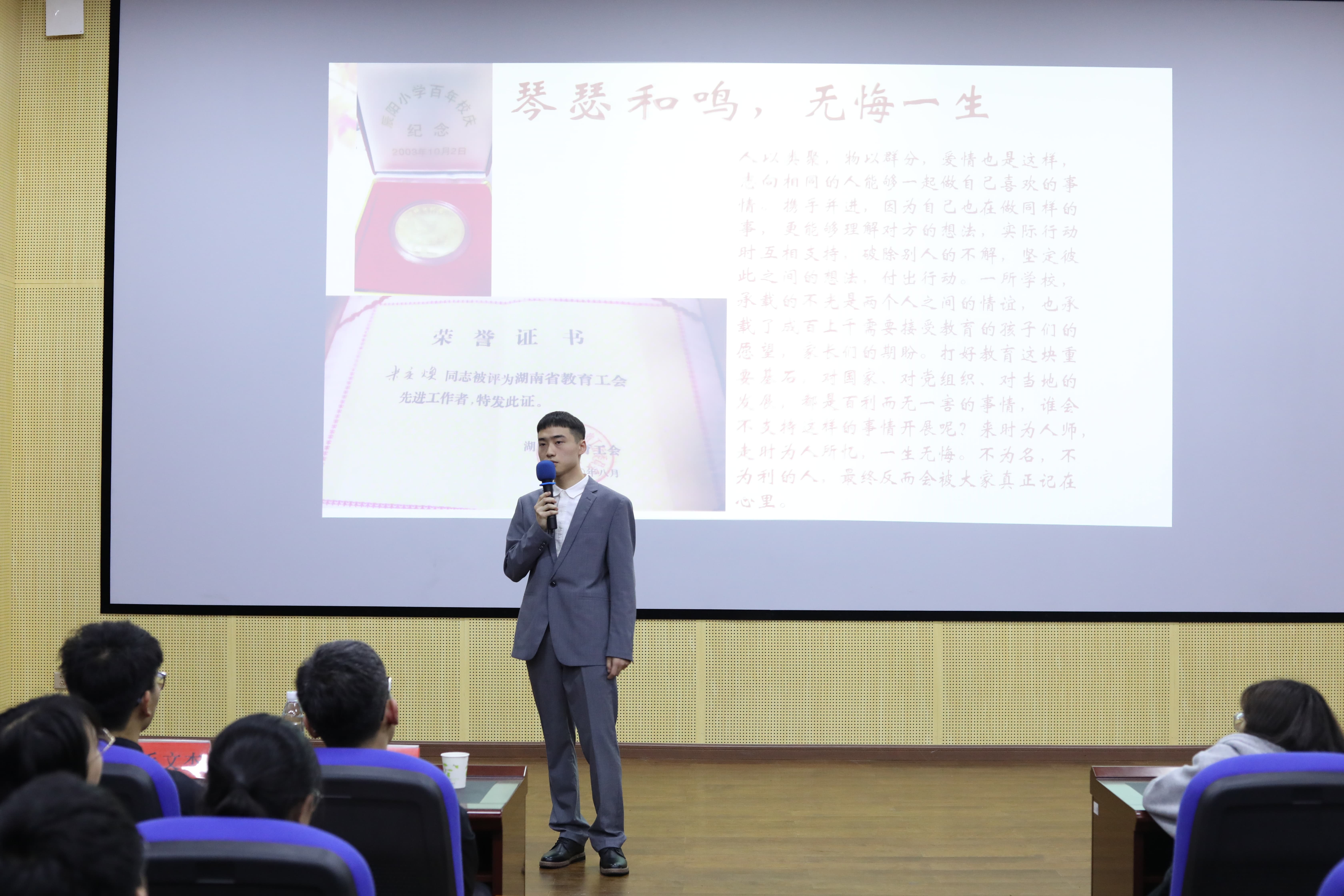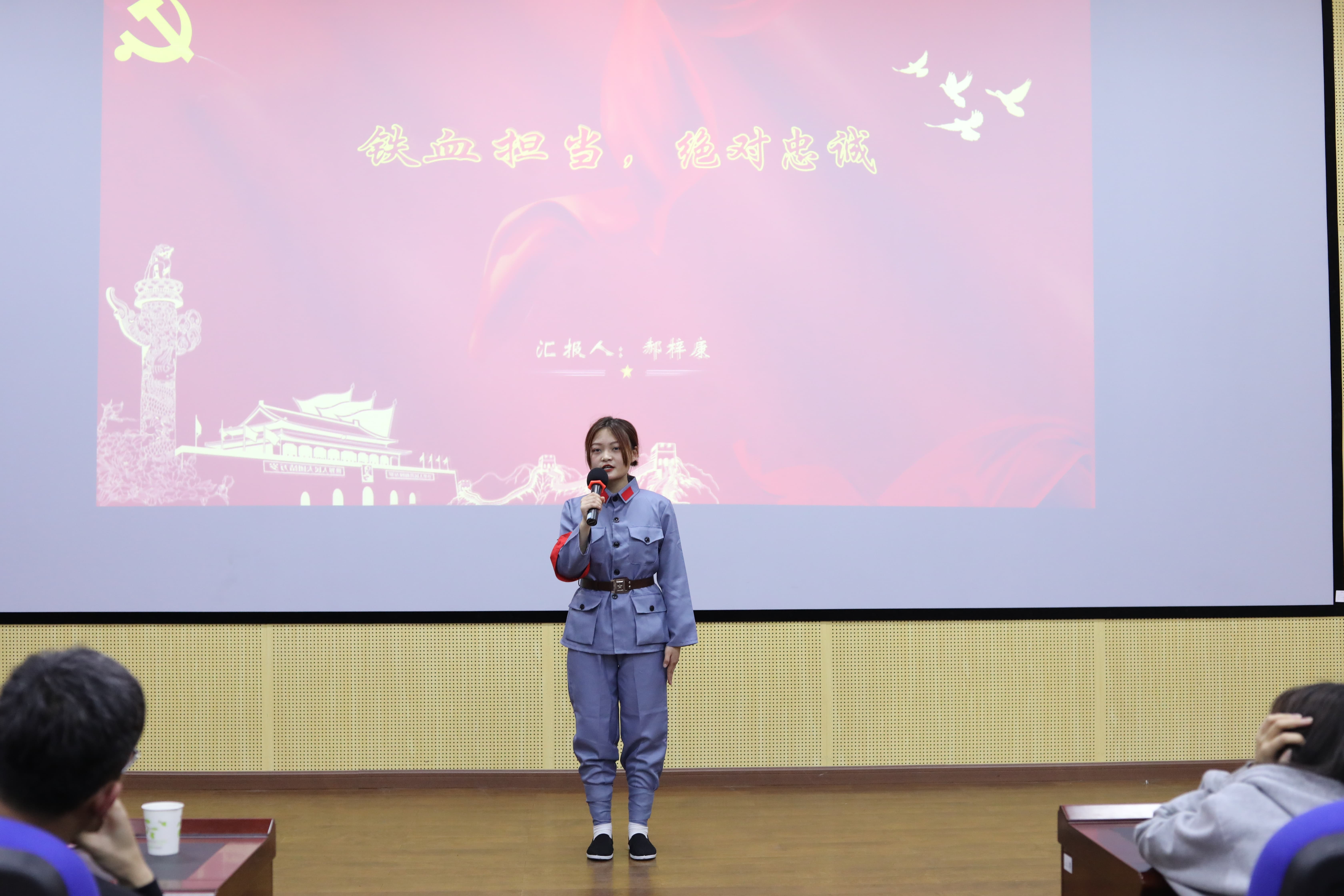 漫漫长征路,英雄不胜数。郝梓康同学讲述了《铁血担当,绝对忠诚》——断肠明志陈树湘的故事。她表示,希望通过讲述陈树湘的故事,能够让更多的同学把对革命知识的简单了解转化为不可撼动的理想信念,这是我们作为思政学子的使命和应有的担当!