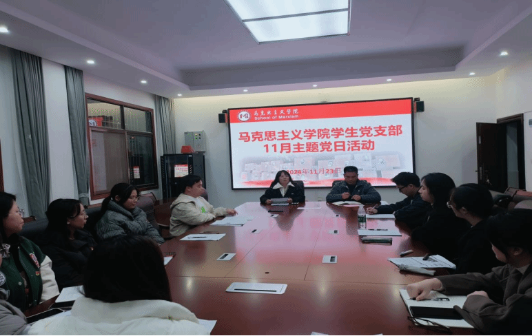 (通讯员 李钰晨)为进一步学习贯彻党的二十届三中全会精神,有效落实习近平总书记在全国教育大会上的重要讲话精神,进一步激发党员的使命担当,11月23日晚,马克思主义学院学生党支部于鹤鸣楼405会议室开展11 月主题党日活动,会议由学生党支部书记曹惠如同志主持。
