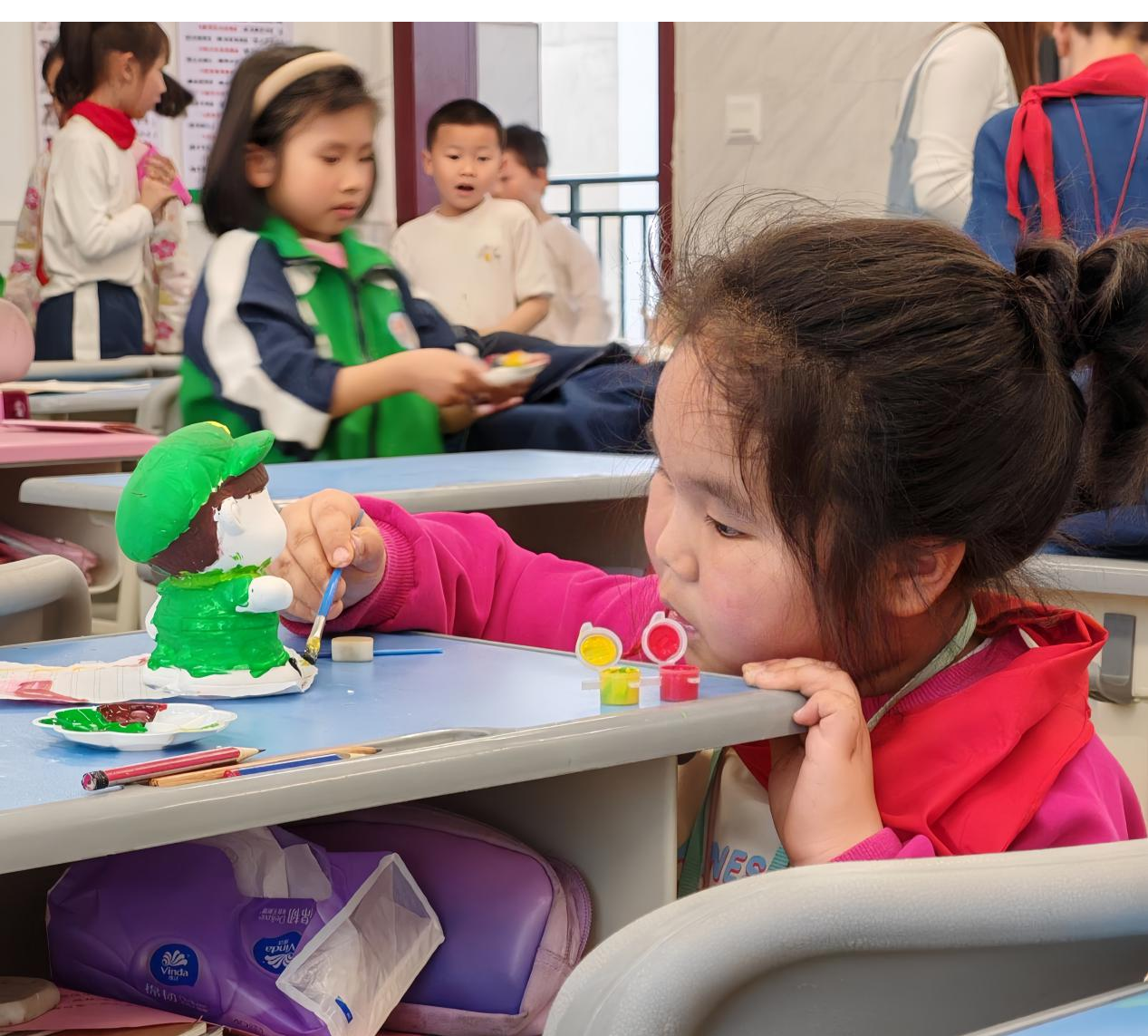在石膏模型涂鸦实践环节,大学生们陪同小学生们拿起画笔,发挥创意,开始涂色创作,大家互帮互助,团结协作,在欢声笑语中,共同完成了“雷锋形象”的石膏娃娃创作,小朋友们眼中的“雷锋”在一笔一画的描绘中逐渐清晰,雷锋精神也在小朋友们心中生根发芽。