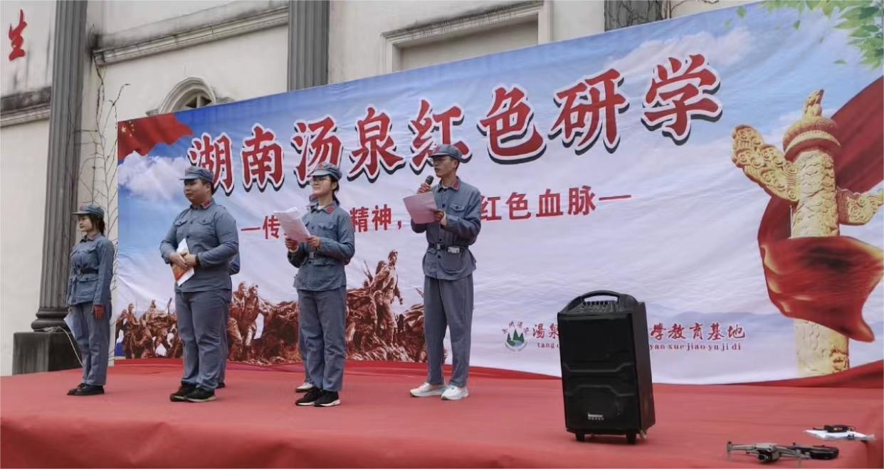 在汤泉红色教育基地,同学们在老师的带领下参观了红色记忆馆、长征展示馆,感受烽火岁月里的革命情怀,认真聆听红军三十四师血战宁远的故事以及陈树湘烈士“断肠明志”的英雄事迹。