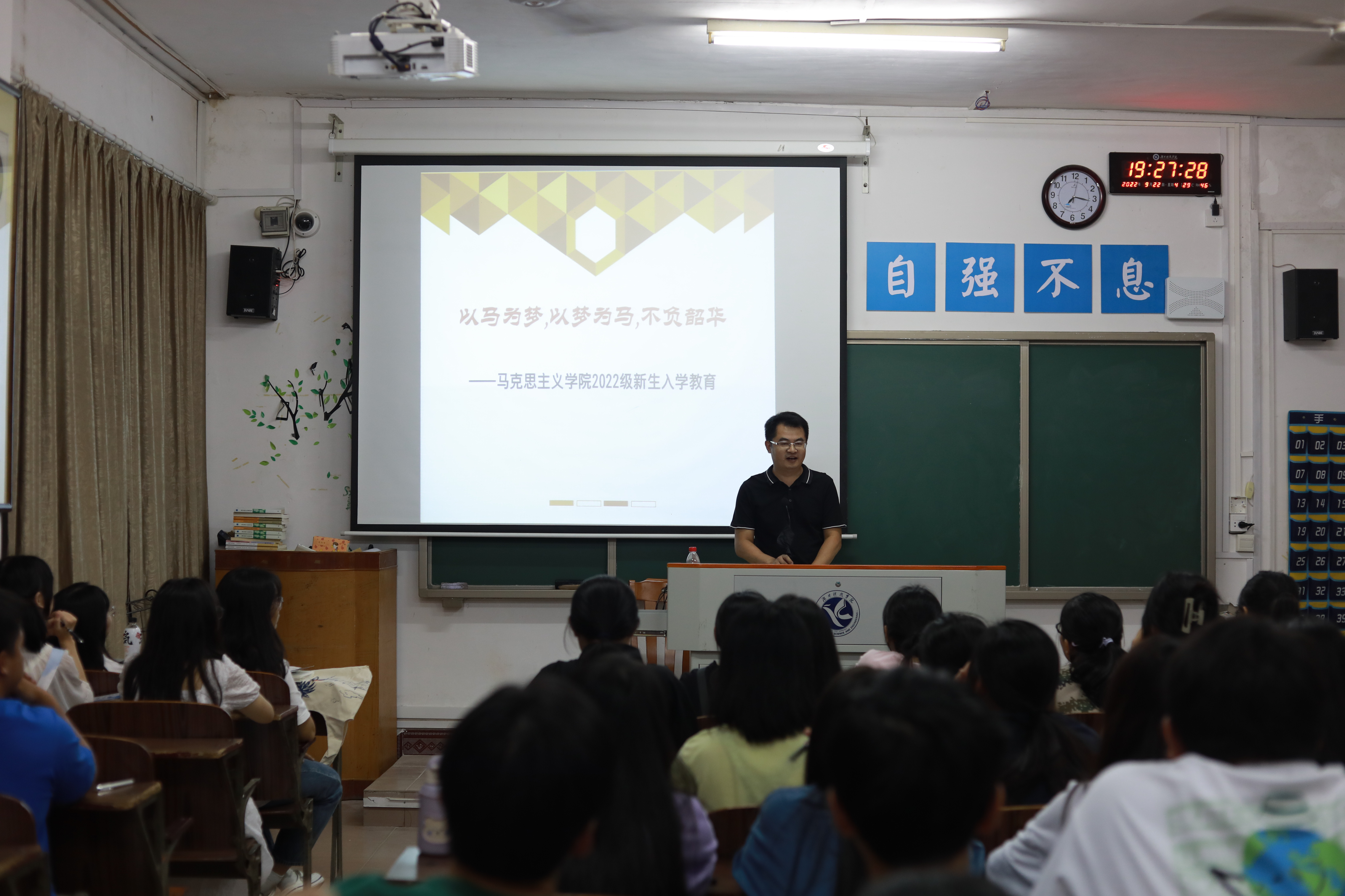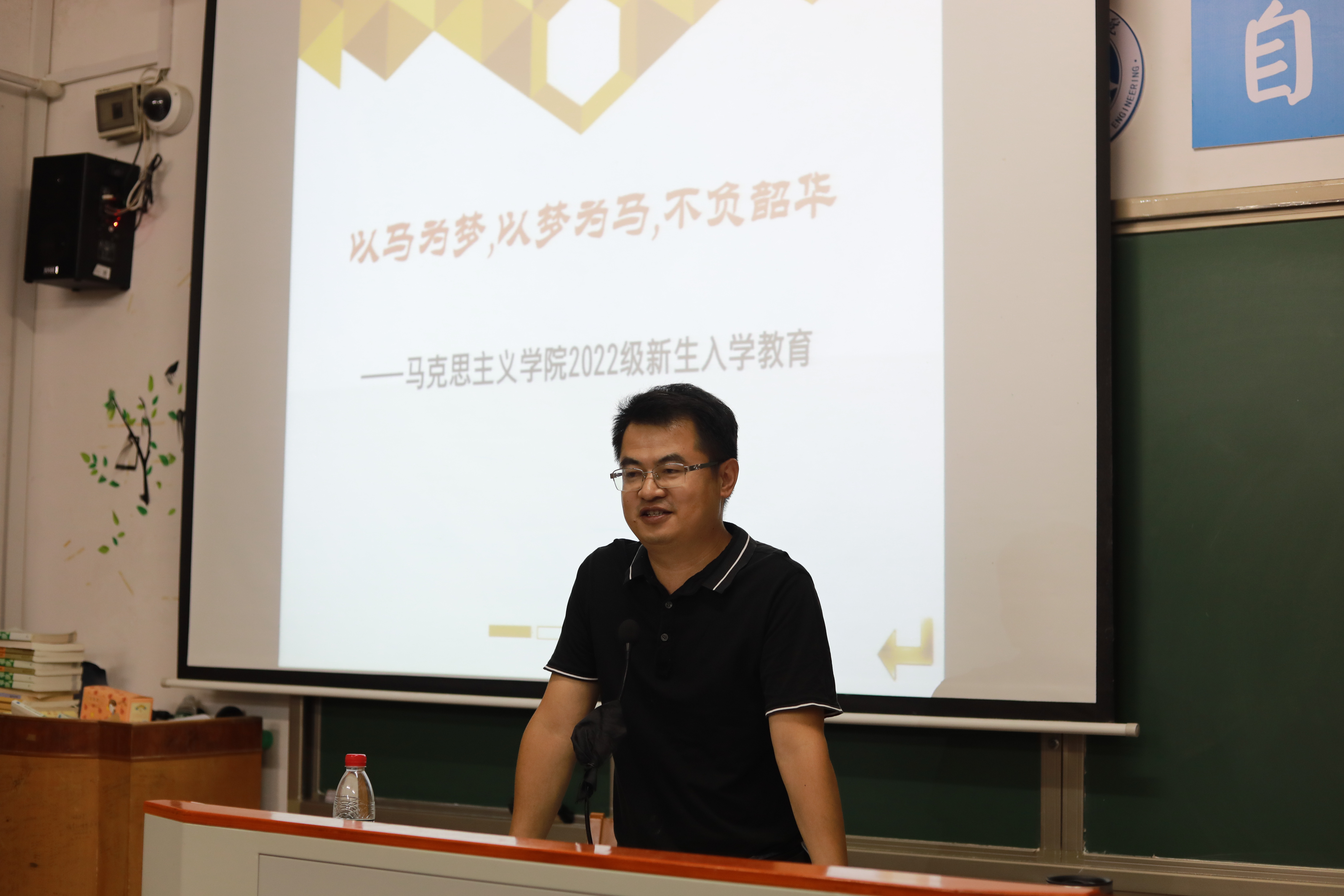 本网讯(记者 李金)为帮助2022级新生适应⼤学⽣活,明确未来规划,9月22日,马克思主义学院于鹤鸣楼501教室举行“以马为梦,以梦为马,不负韶华”主题讲座。此次讲座由马克思主义学院党总支书记郑向晖主讲。