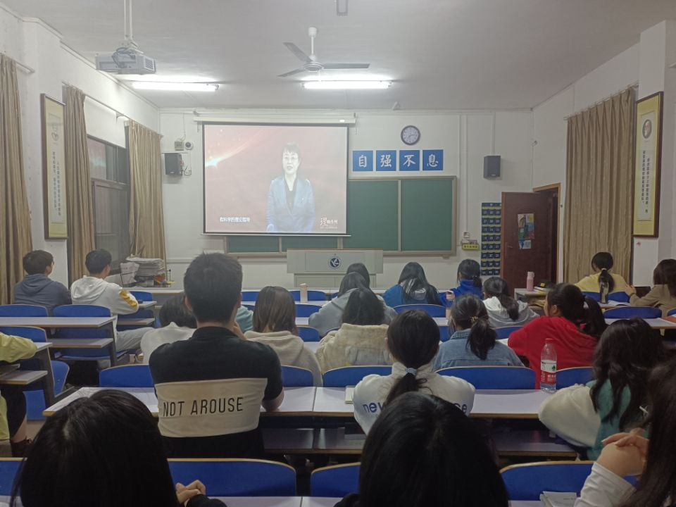 本网讯(记者 谢姣娇、李金)近期,随着我市理论宣讲栏目《理响永州》在电视台的播出,马克思主义学院院长廖雅琴教授作为首场嘉宾参与解读录制,掀起了我院学子对于“两个确立”理论学习的热潮。4月3日至4日,马克思主义学院学子于鹤鸣楼406、407教室以及自习室观看本期视频,学习“两个确立”的决定性意义。