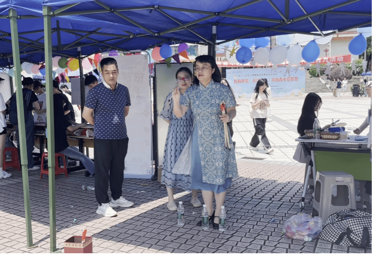 活动期间,我院院长廖雅琴、党总支书记陈玉皎、党总支副书记高丹来到活动现场,与同学们一同体验活动乐趣。