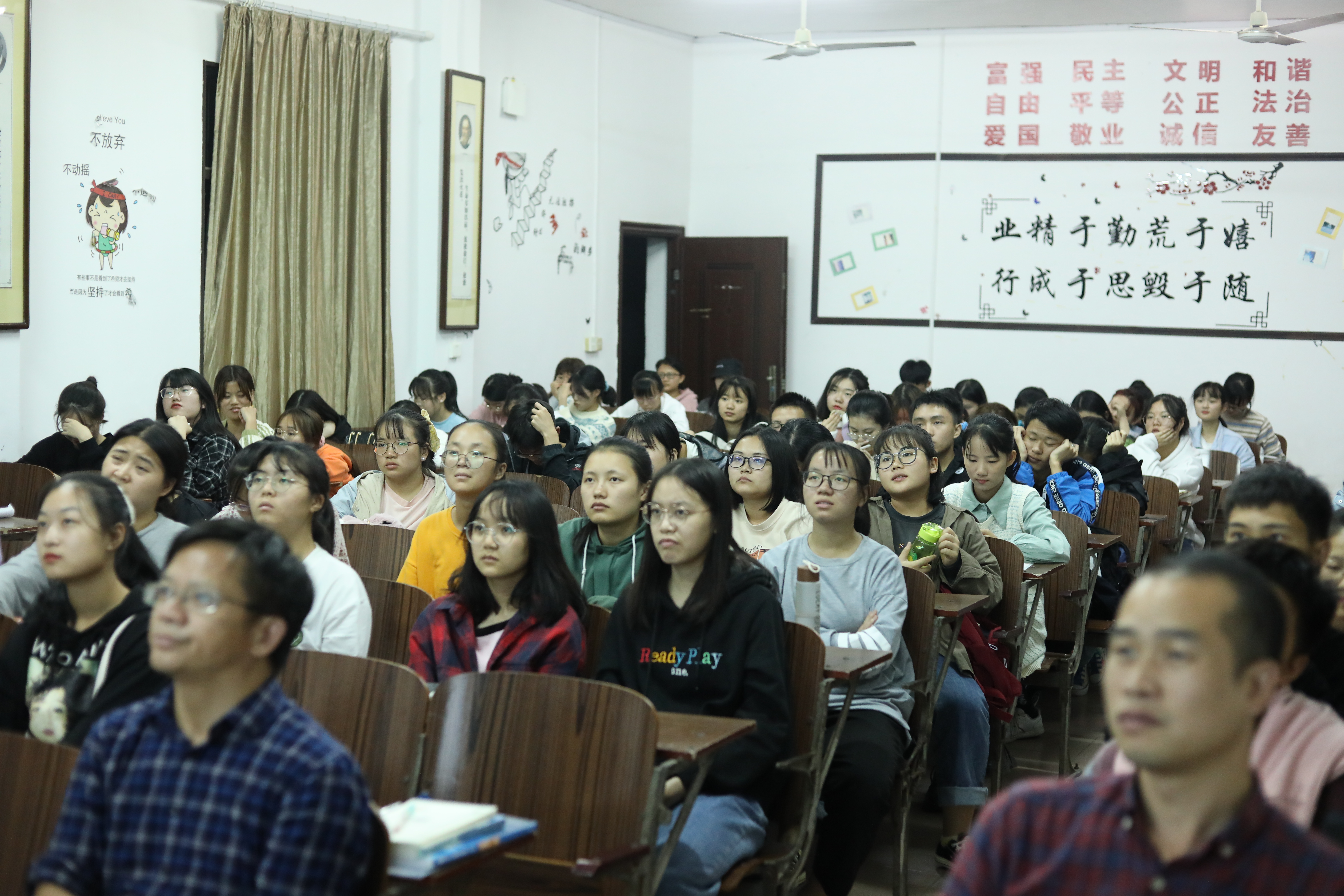 现场创作结束后,已接近晚上十一点,但许多同学还意犹未尽,不愿离去。此次讲座活动,不仅让同学们切身感受到了中华传统文化——书法的魅力,还增加了同学们的文化素养,提高了同学们的书法鉴赏能力。