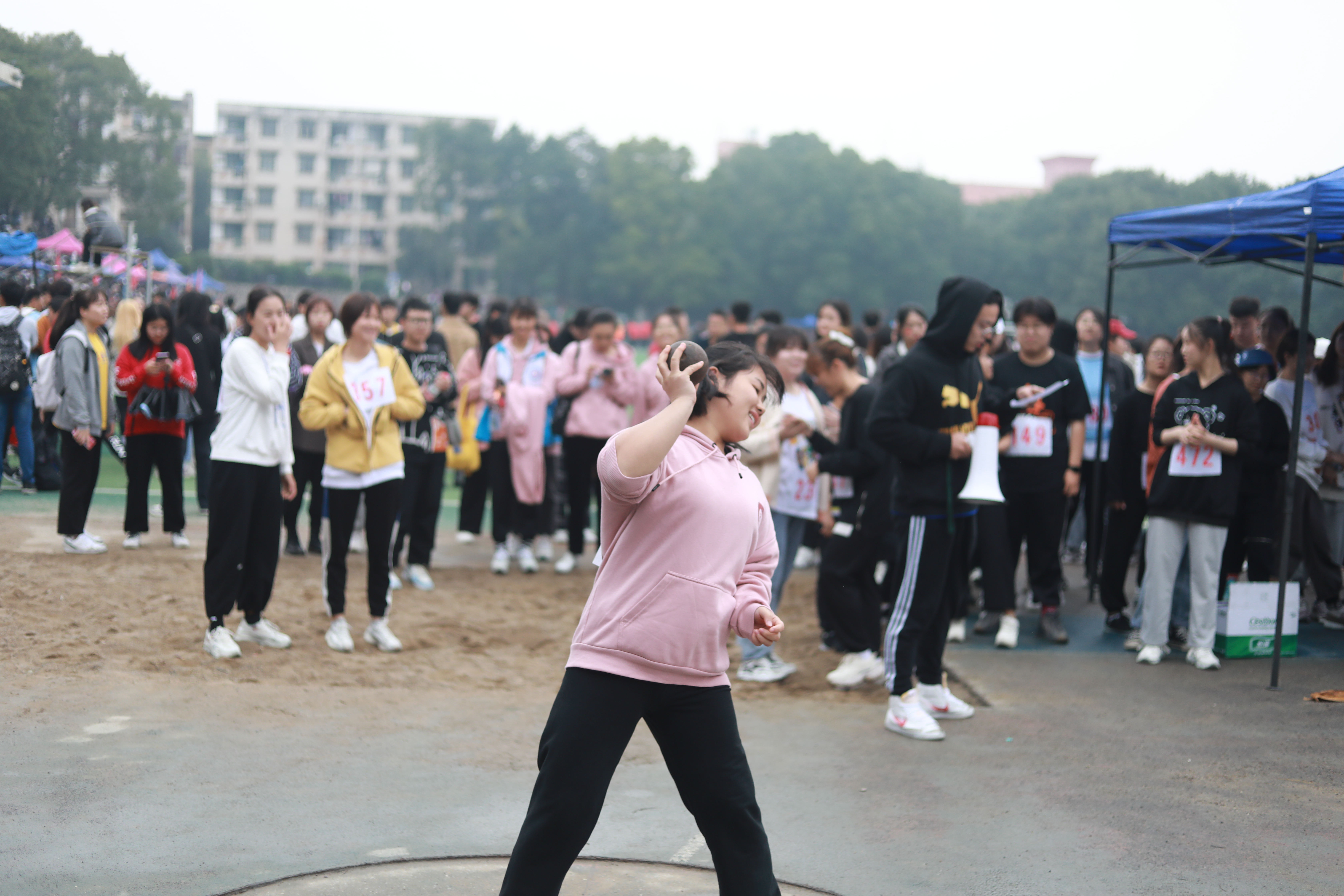 赛场上,我院选手拼尽全力,思政2002班的黄晓慧同学在女子铅球比赛中不惧对手,勇于拼搏,获得了第二名的骄人成绩;观众席上,加油声、呐喊声此起彼伏,此次比赛体现了更高、更远、更快、更强的体育精神,也展现了团队间默契配合、共同协作的团队精神。