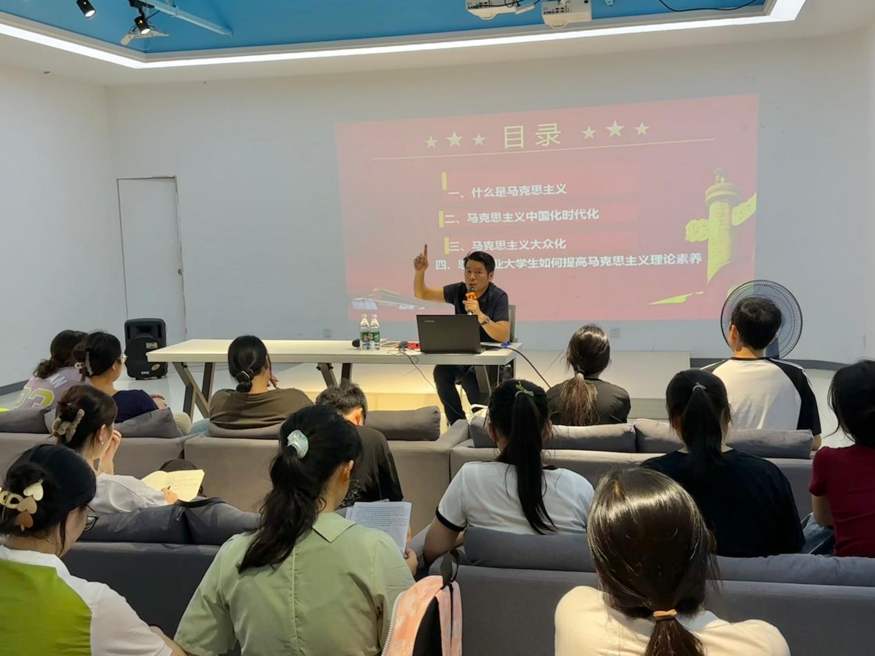 本网讯(记者 郭瑞)为引领青年学生感悟马克思主义中国化时代化大众化的重要成果。9月4日晚,马克思主义学院于创新创业学院一楼报告厅开展题为“谈马克思主义的中国化时代化大众化”的专题讲座。本次活动由副教授李定坤主讲,我院2022级及2023级全体学生参与。