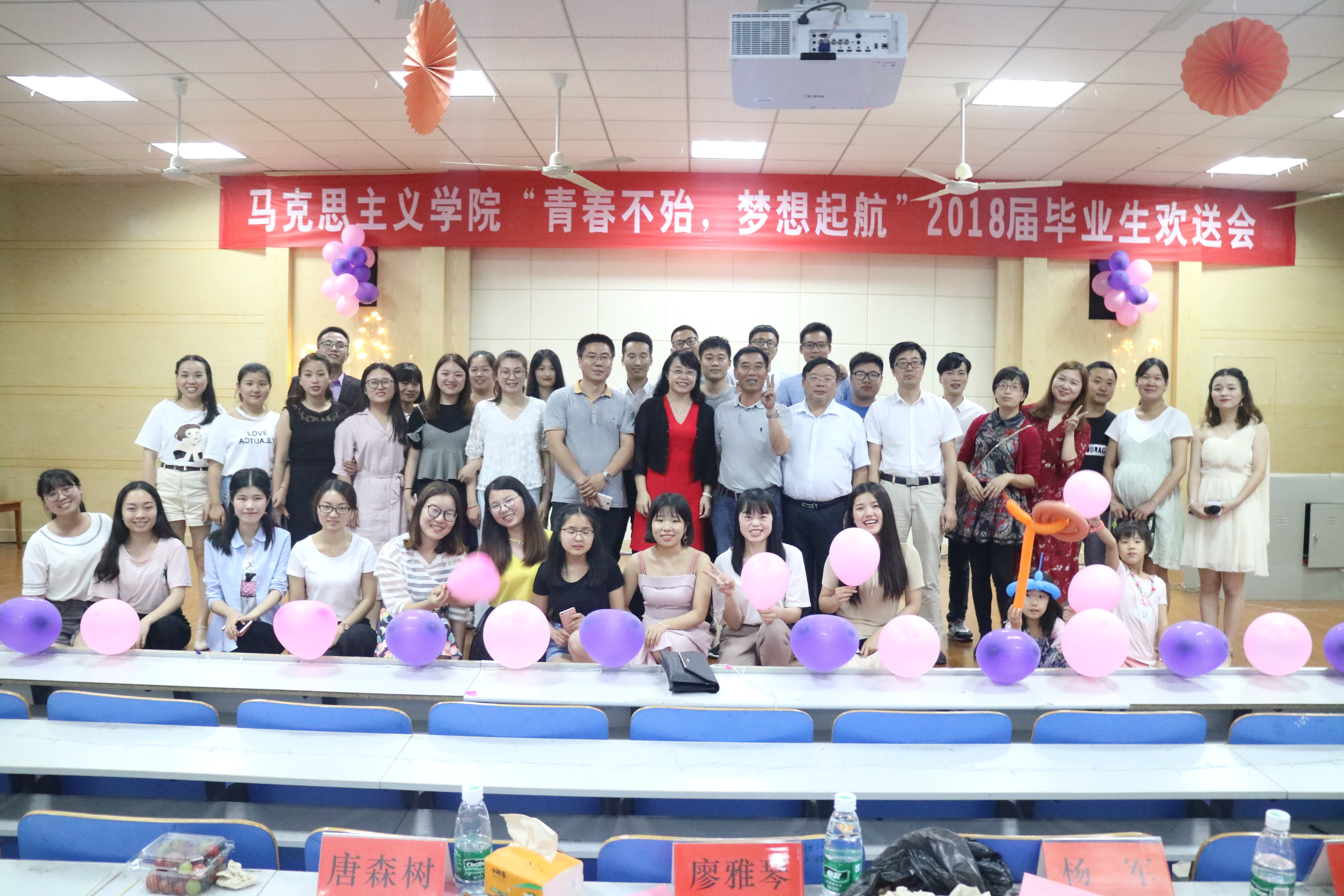 本网讯(通讯员 张亚娟)鲜花怒放桃李芬芳,歌舞飞扬不改离殇。6月6日晚,马克思主义学院在致远楼701举办2018届毕业生欢送会,学院领导及全院师生观看晚会。