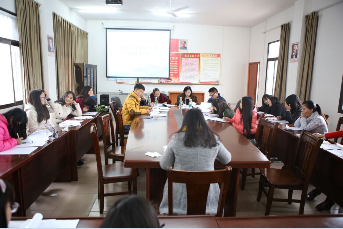 本网讯(记者 冯雨涵)12月26日和29日,马克思主义学院在传播楼会议室分两批举行2012级毕业论文开题。马克思主义学院廖雅琴院长、党总支书记唐森树教授、邹明洪教授、李钟麟教授、柏春林教授、万平副教授、邓怡舟老师、汪水泉老师参加开题报告并给同学们做具体的指导。