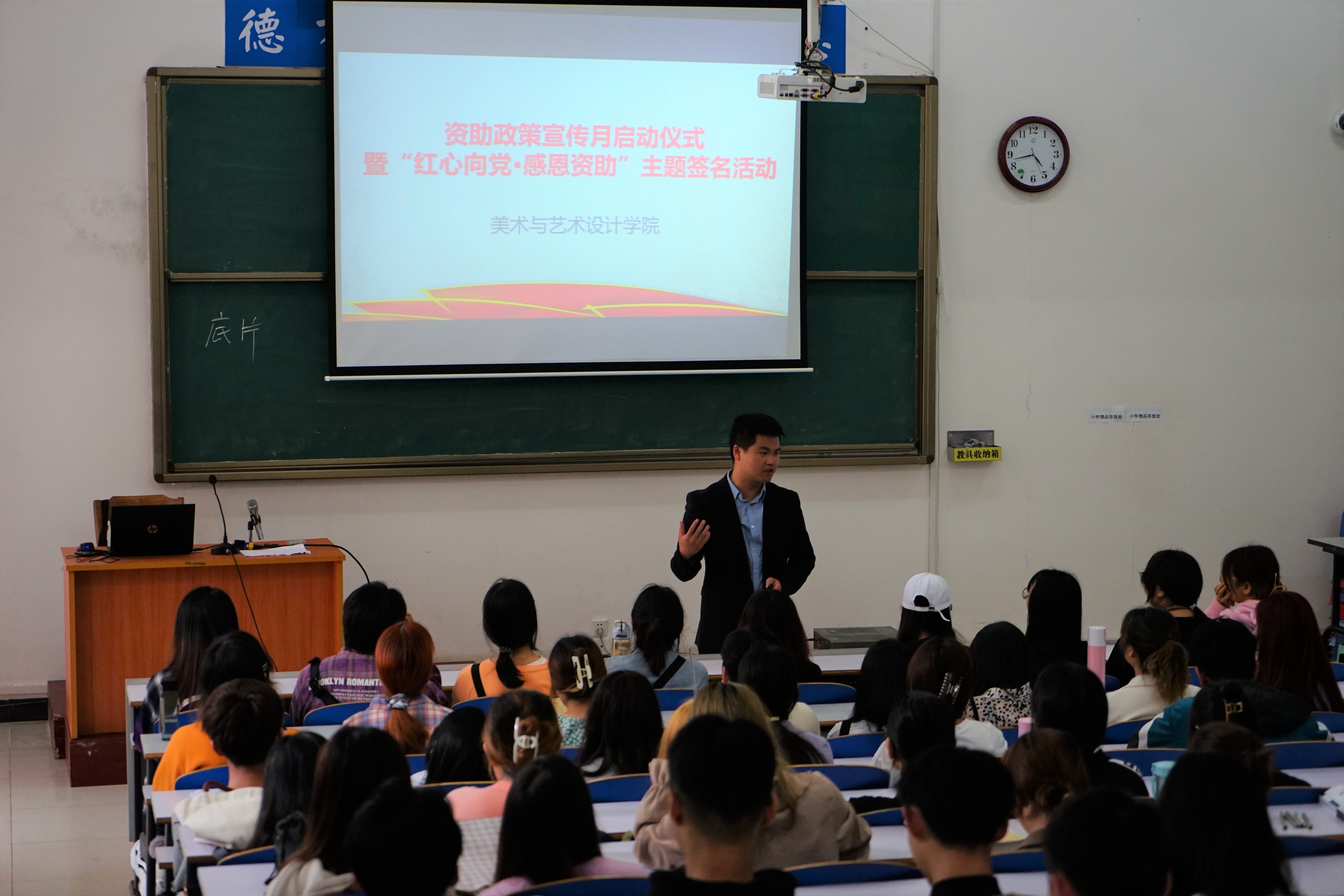(通讯员向望)2021年5月17号上午,美术与艺术设计学院举办以“红心向党,感恩资助”为主题的学生资助政策月的教育系列活动的启动仪式。学院各年级辅导员,以及200余名家庭经济困难学生参加了此次启动仪式。